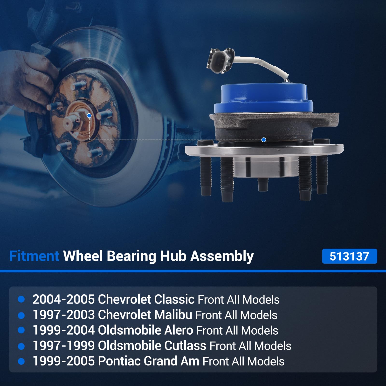 COMPATIBILITY - 513137 Wheel Hub Assembly replacement for 04-05 Chevry Classic/97-03 Malibu, 99-04 Oldsmobile Alero/97-99 Cutlass, 99-05 Pontiac Grand Am