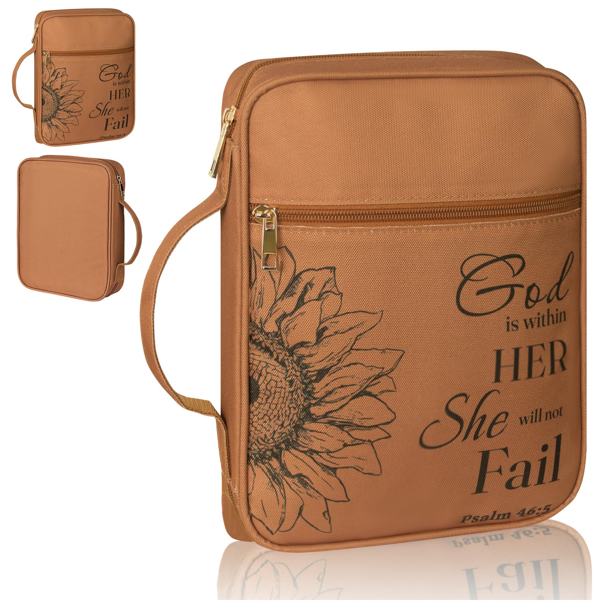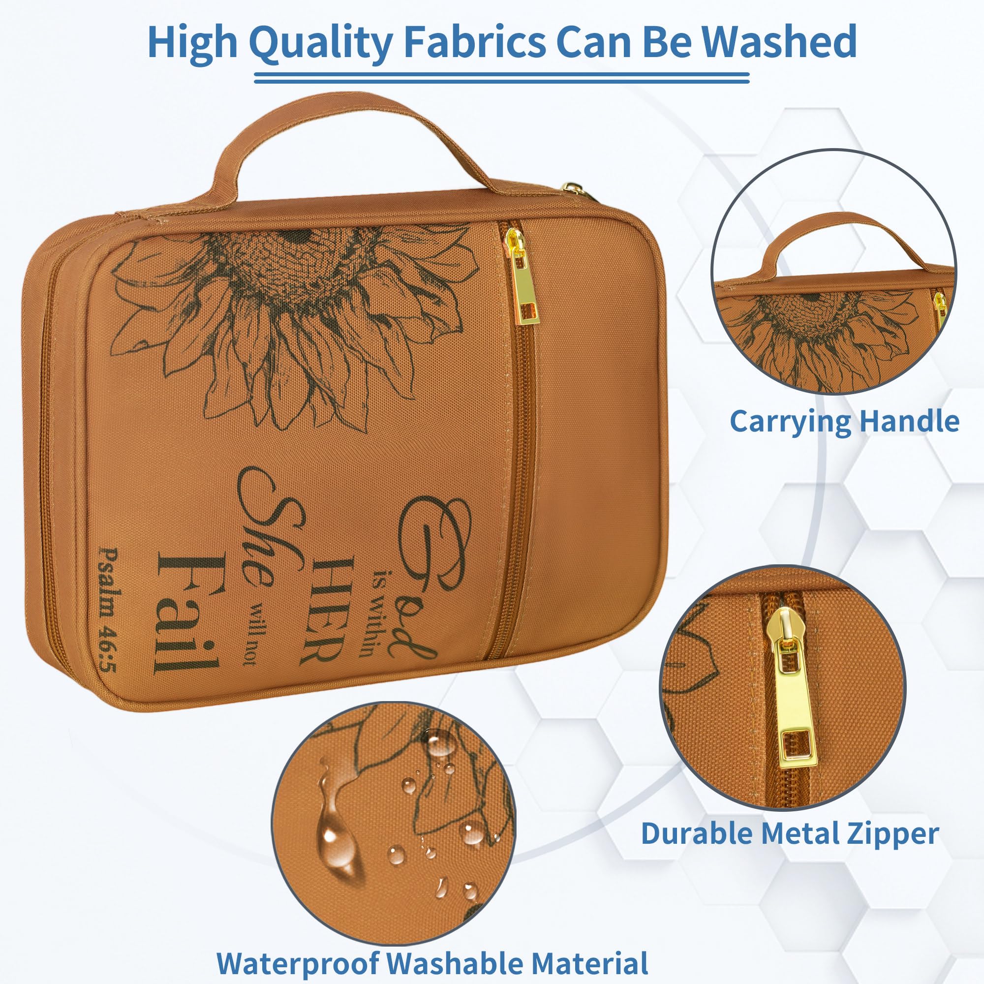 The floral pattern and God is Within Her She Will Not Fall sign can expresses a message of hope and verse. The bible cover is long-lasting and made of water-resistant polyester canvas.