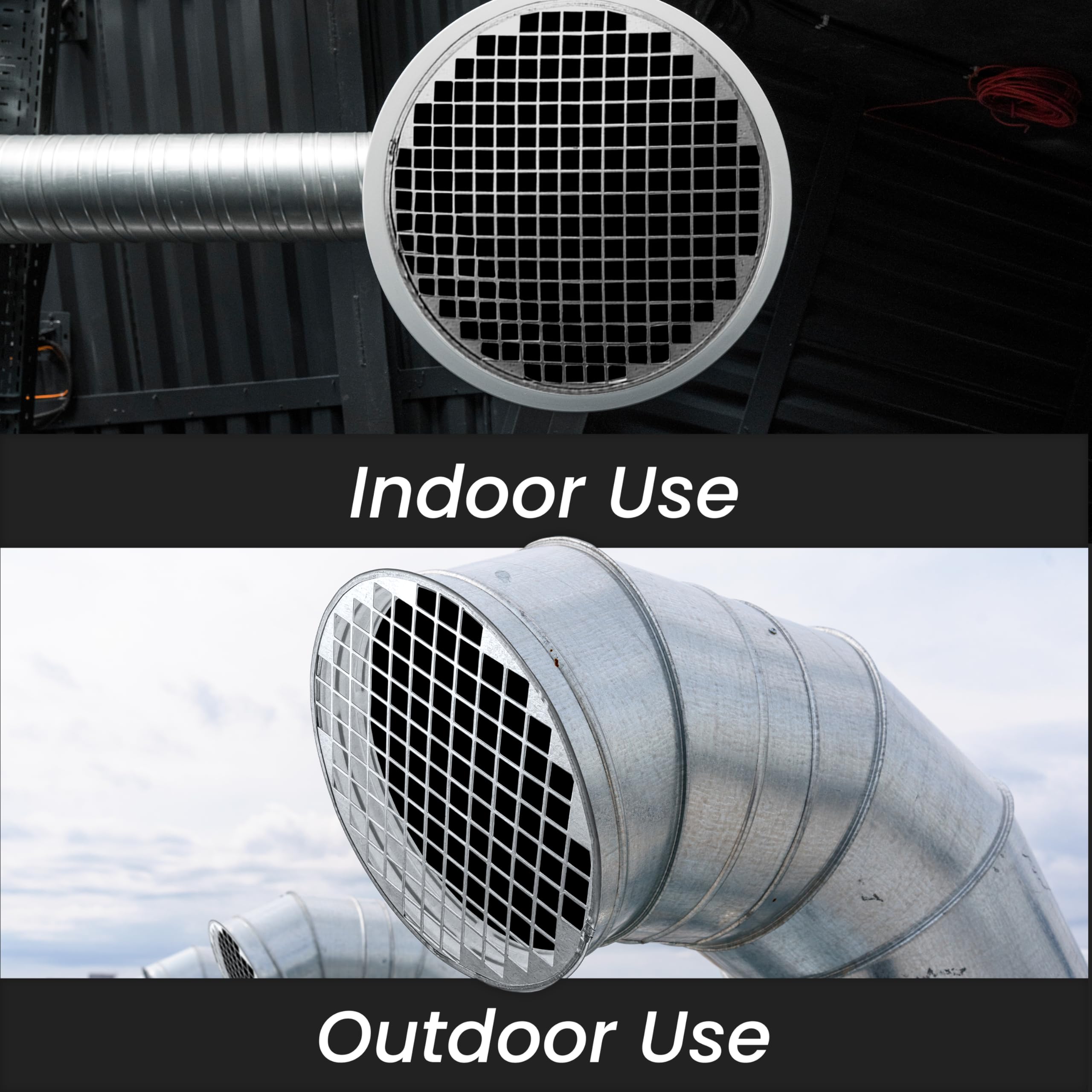 Made of high quality metal. Duct cap mesh screen and cap housing made out of galvanized steel.