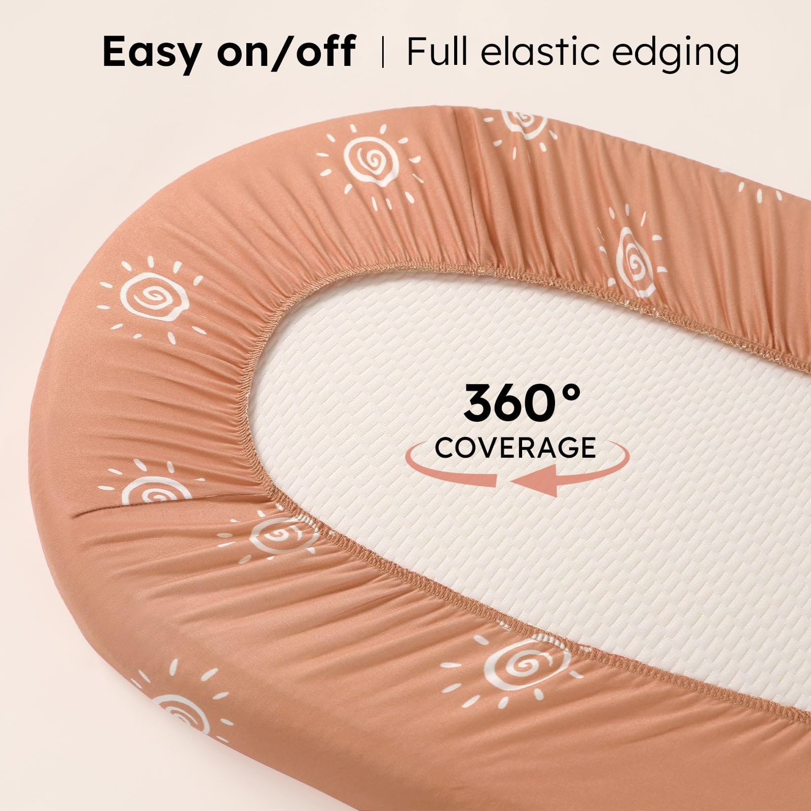 Snug Fit: Measuring 32β x 16β, the 3 pack bassinet fitted sheets fit most oval, round, rectangle, hourglass shaped bassinet mattresses. With full elastic edges of the bassinet sheets, a 5-inch deep pocket, and stretchy fabric, they ensure a snug, wrinkle-free fit that stays securely in place, even during your babyβs most active nights.