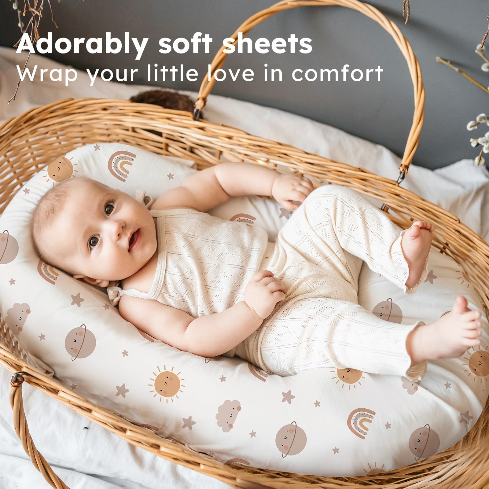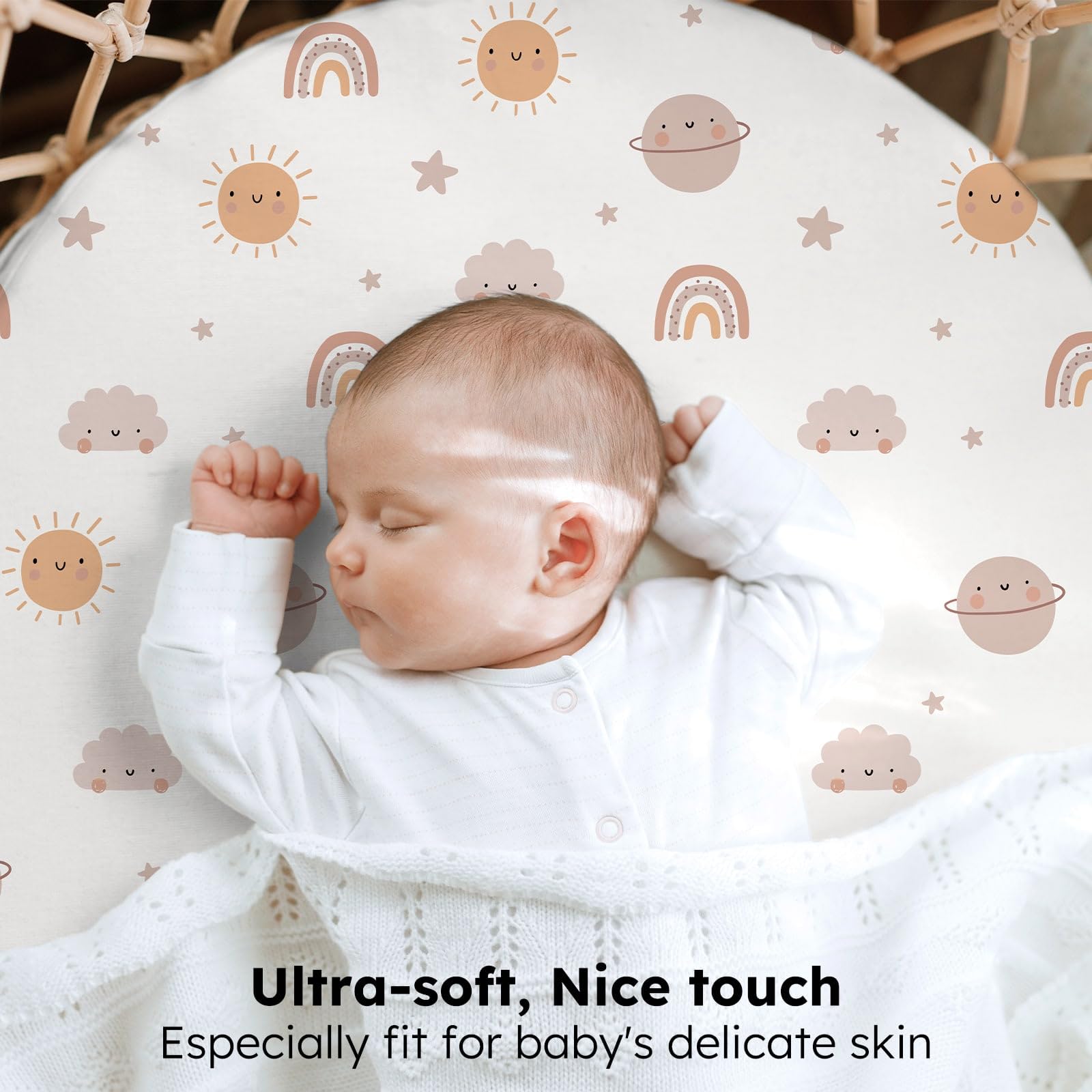 Soft & Skin-friendly Fabric: Crafted from premium microfiber with advanced knitting techniques, our baby bassinet sheets are ultra-soft and gentle enough for delicate and sensitive skin. Designed to keep your baby comfortable and relaxed, they help maintain a restful sleep environment and daytime moments full of joy.