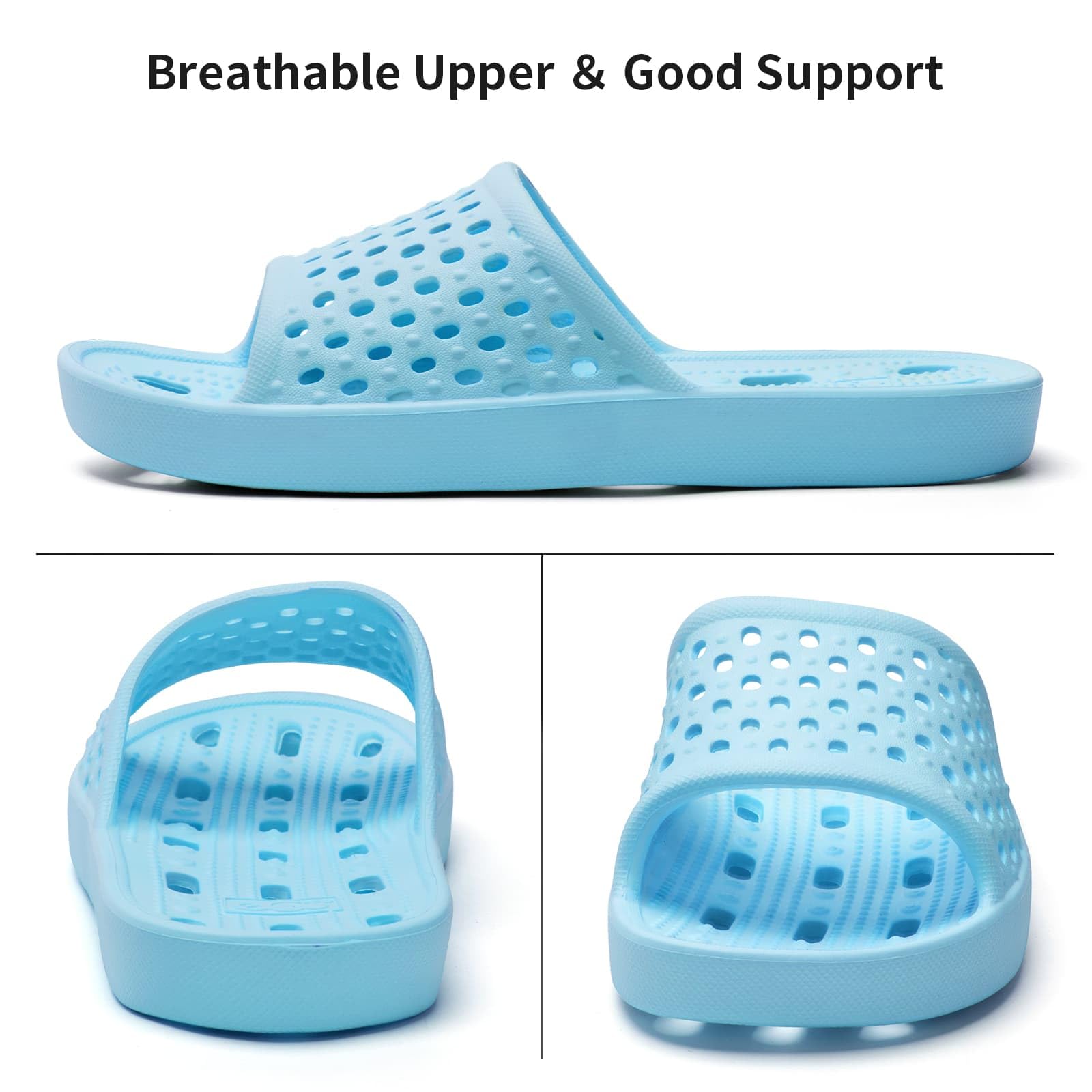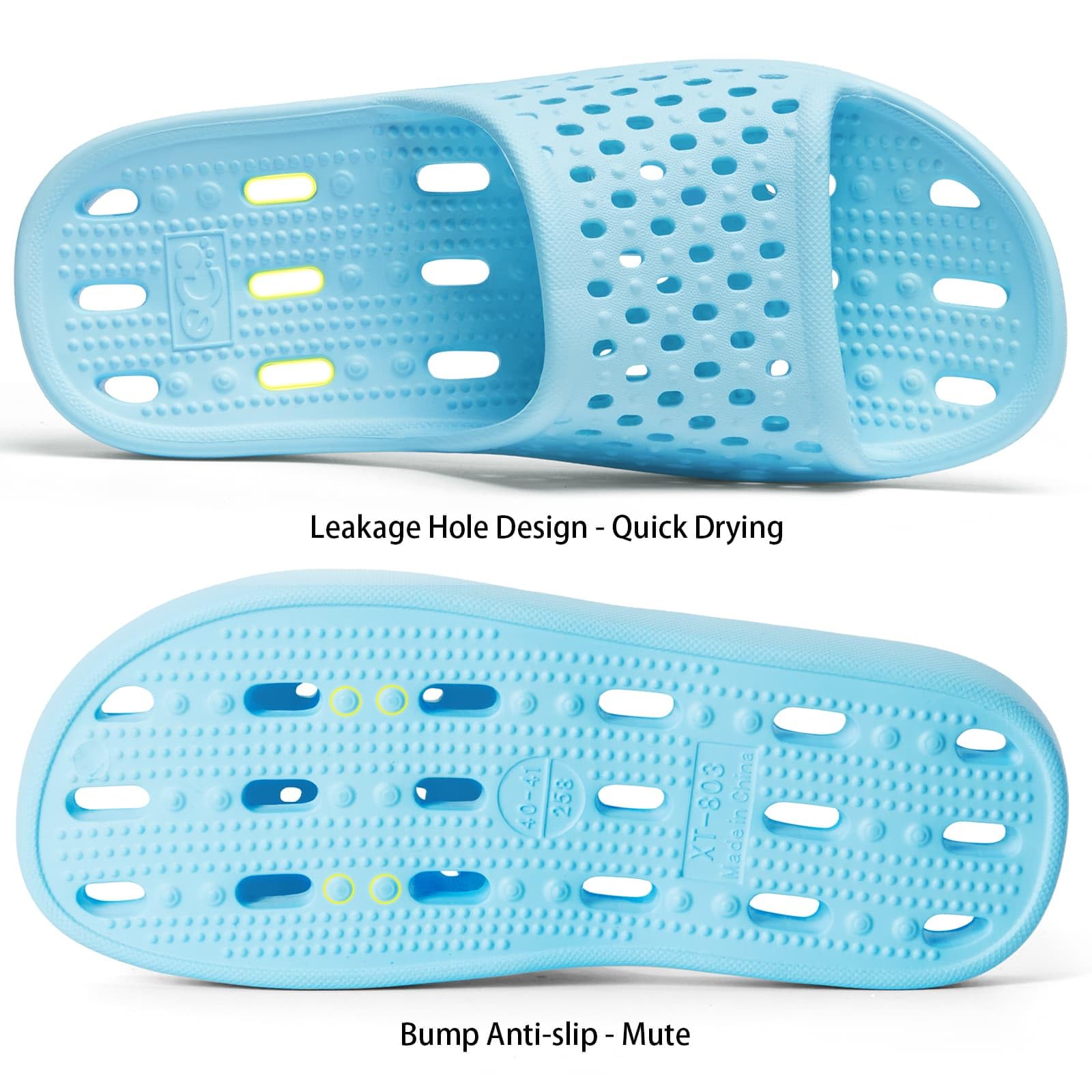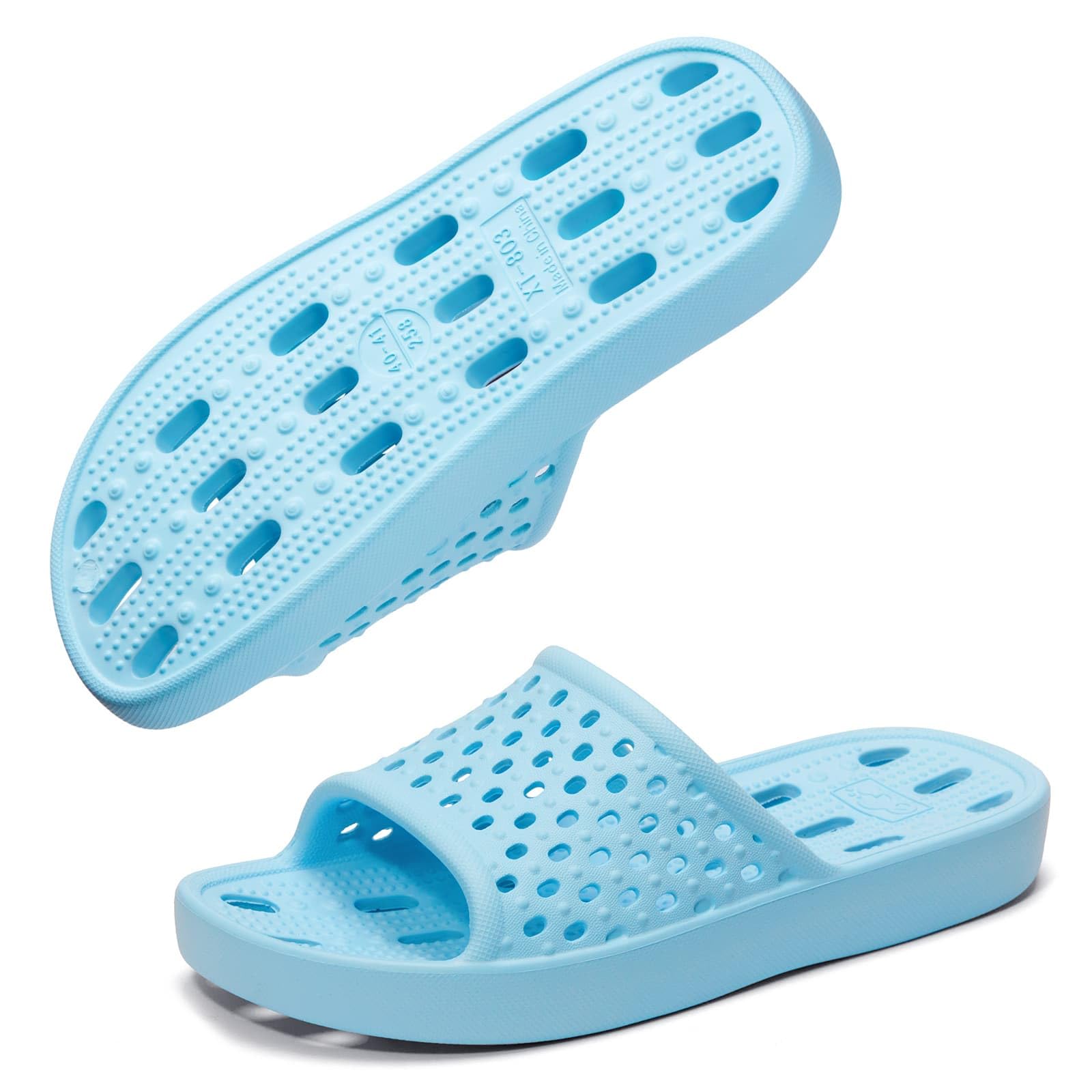 This is a very comfortable shower shoes. When you used in the shower, there are many drainage holes in the sole for quick drainage, which makes your feet dry and comfortable.