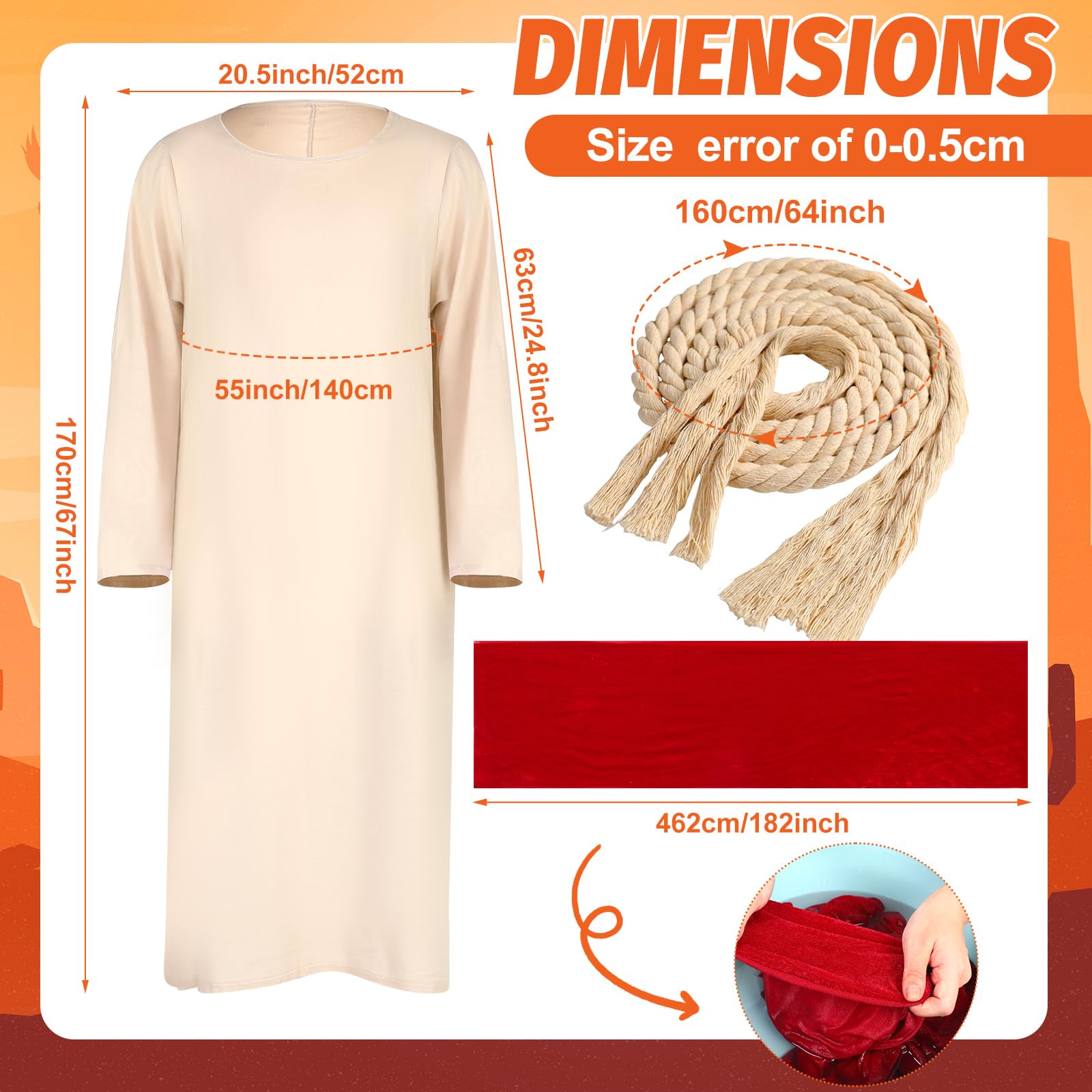 Easter Accessories: you will get 1 set of men costume, including 1robe, 1 red scarf, 1 waist rope, complete combination can meet your needs of dressing up in Easter parties