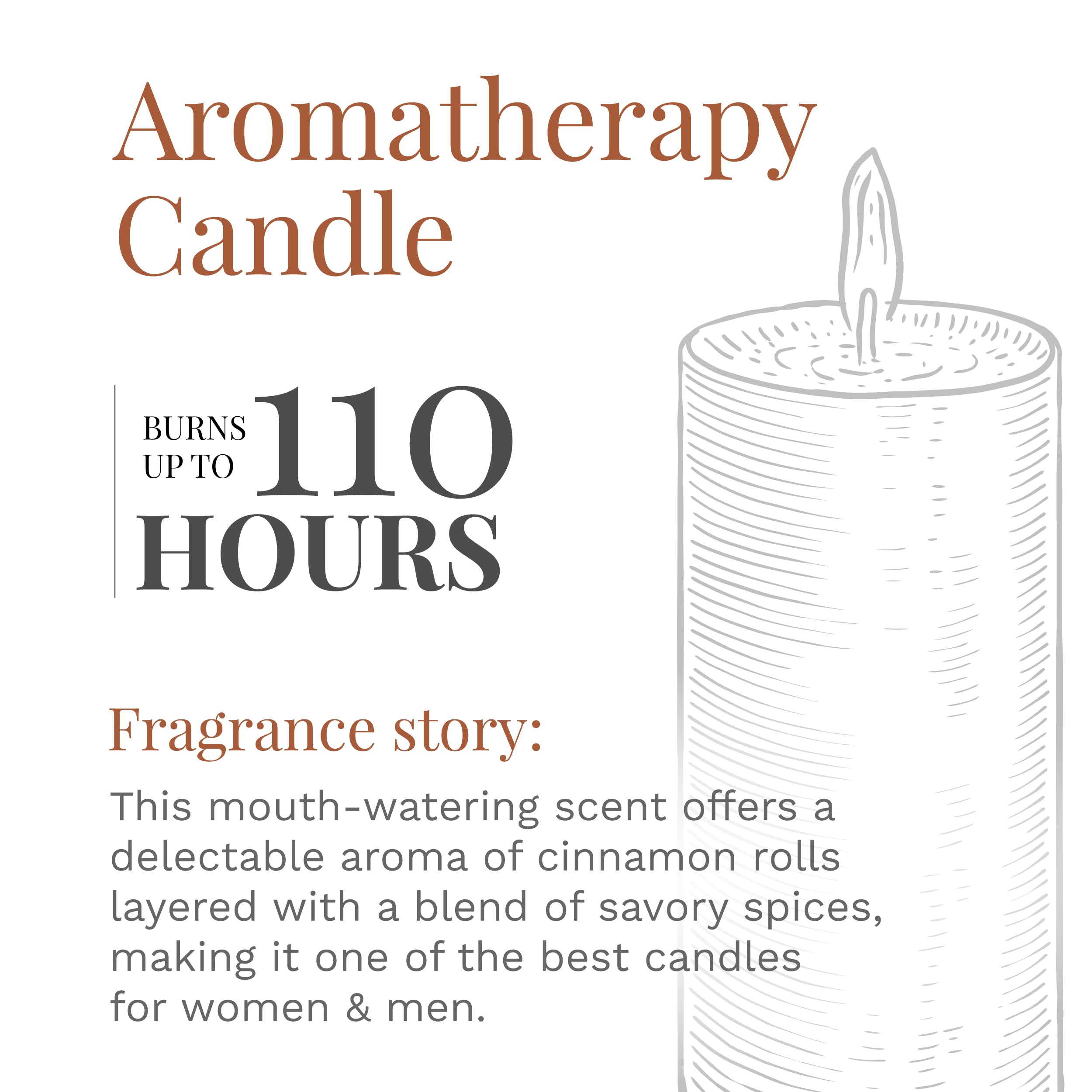 AROMATHERAPY CANDLE–This mouth-watering scent offers delectable aroma of warm cinnamon with rich pecan accentsmaking it one of the best candles for women and men.