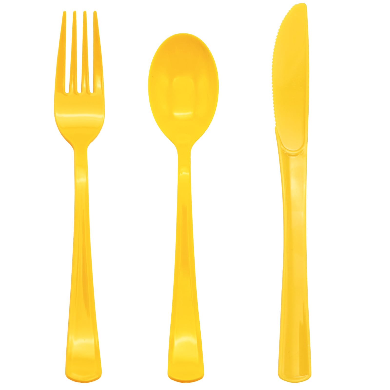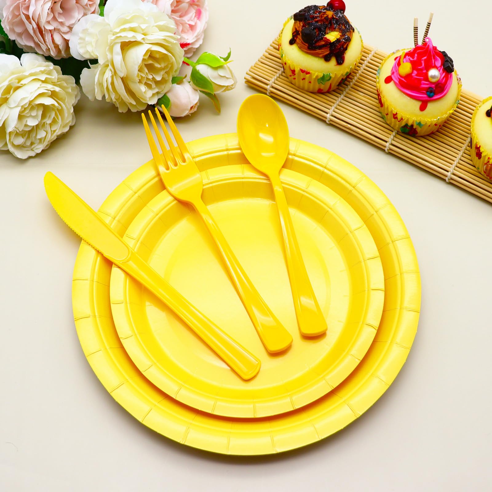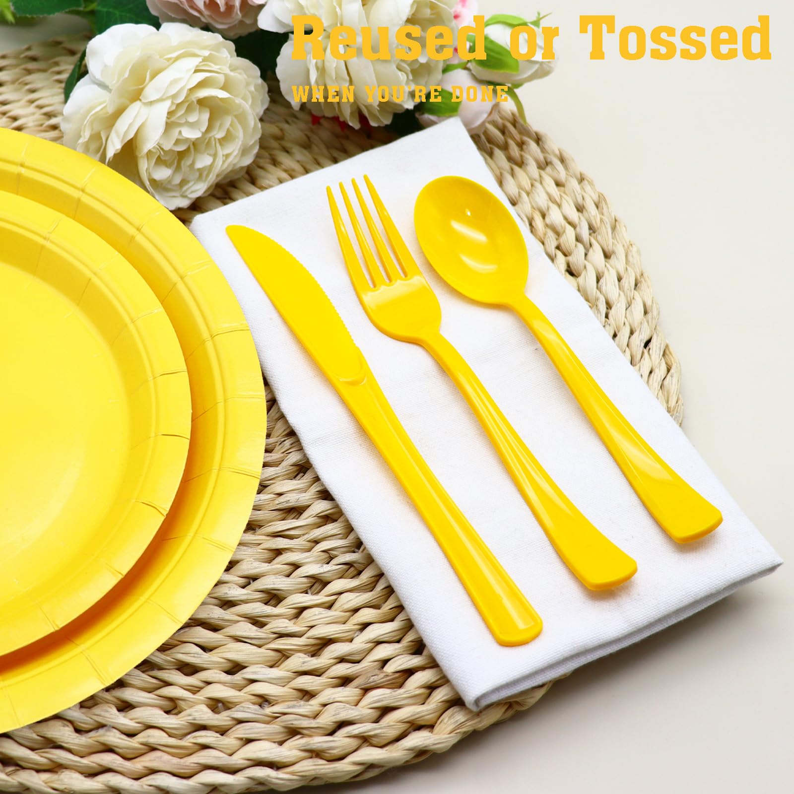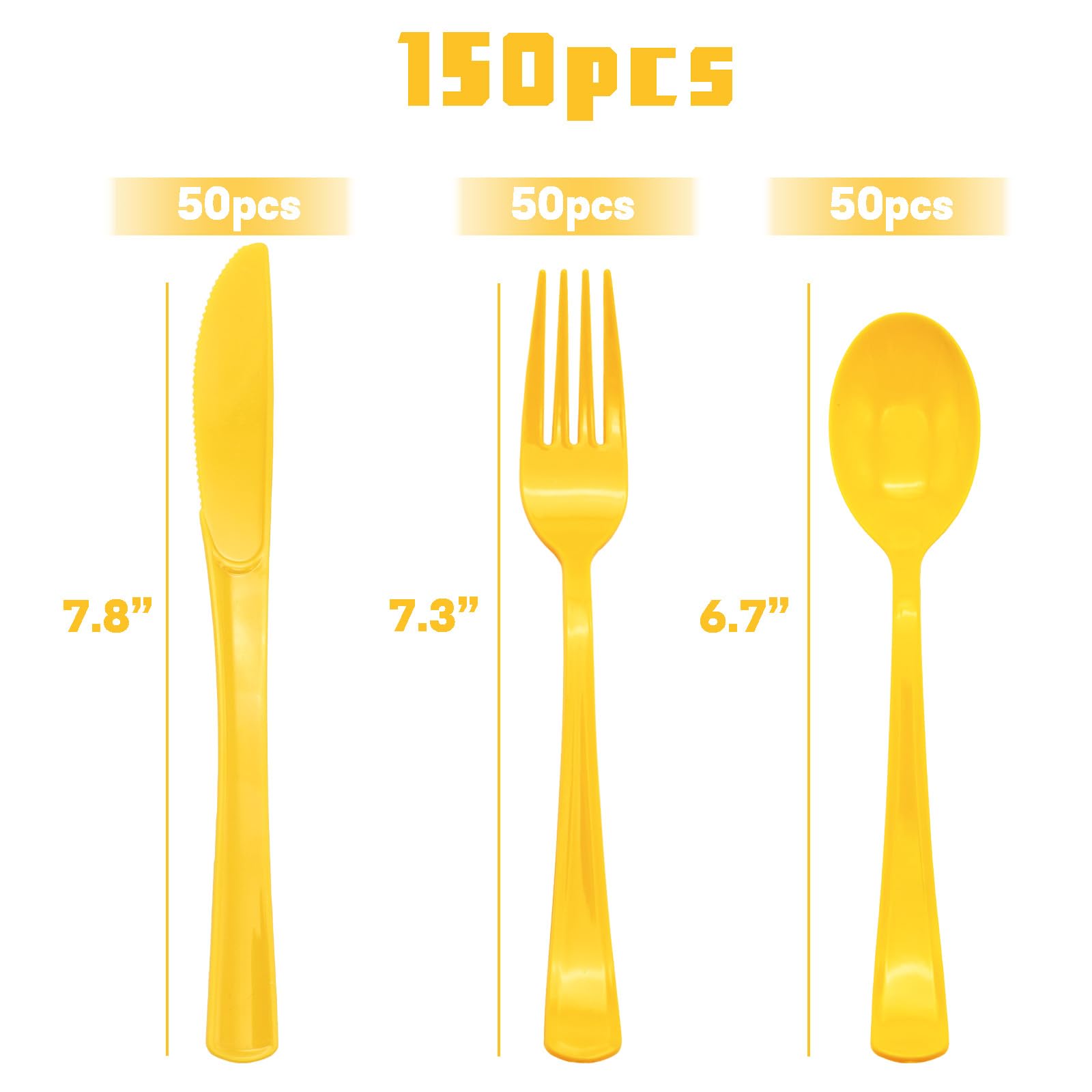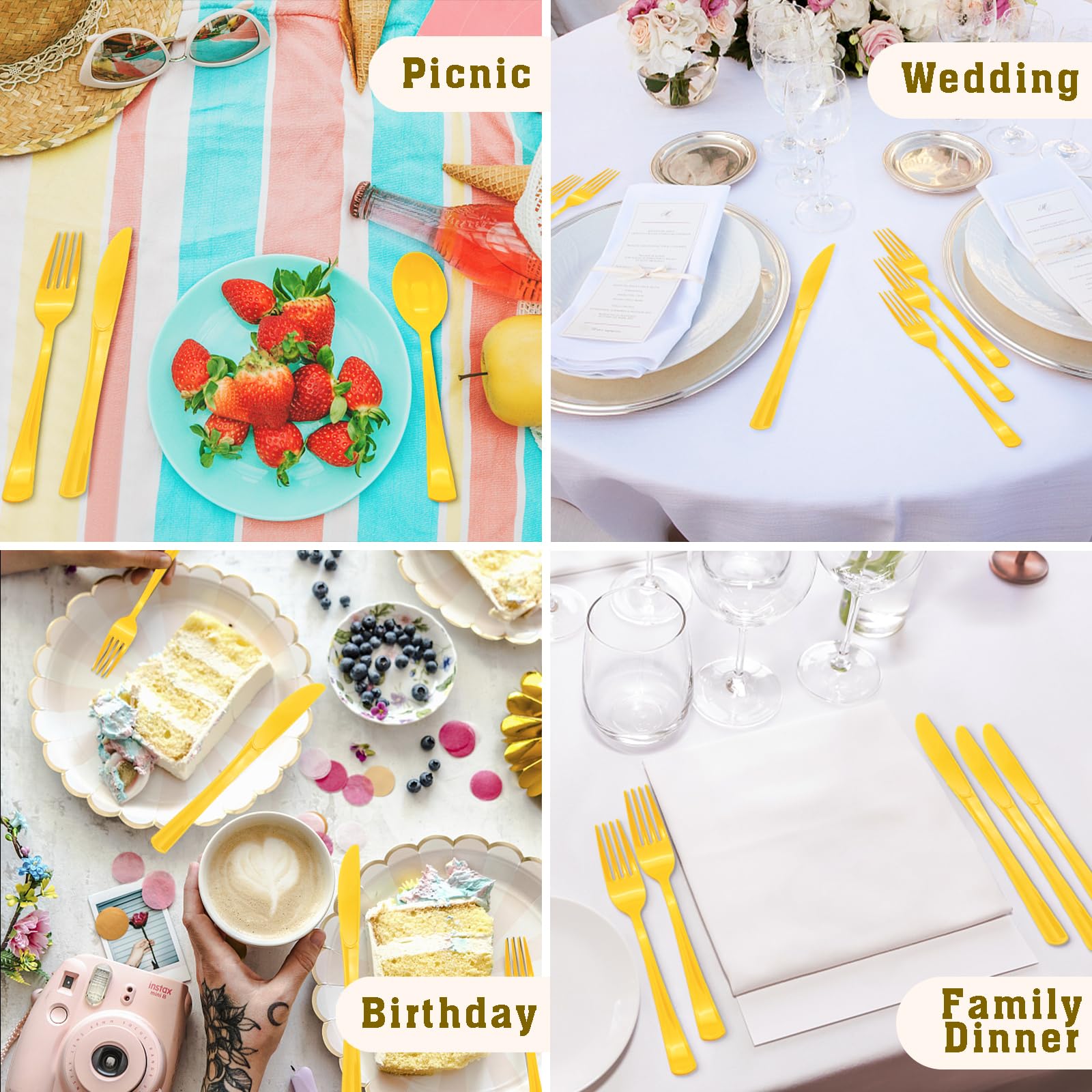 【Widely Used Occasions】: Suitable for a variety of occasions, including birthdays, baby showers, family gathering parties, picnic camping, etc. Whether for weekday meals or special occasions, this set of yellow plastic utensils can show its unique charm and practicality.