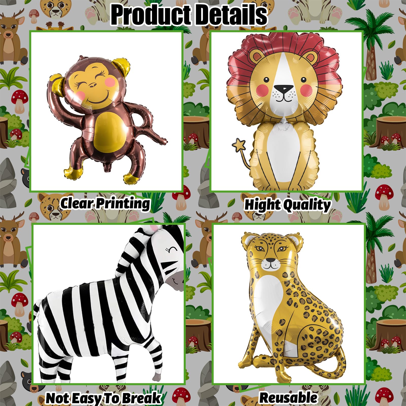 🐆 Perfect Jungle Safari Party Decorations: These giant animal balloons add so much fun and excitement to kids birthday party, wild one animal party, jungle themed party, safari party decorations and baby shower, they also make the perfect photo prop or backdrop. Shining color foil balloons, color uniform, strong and beautiful, ideal for school, new year, festival, part decorations.