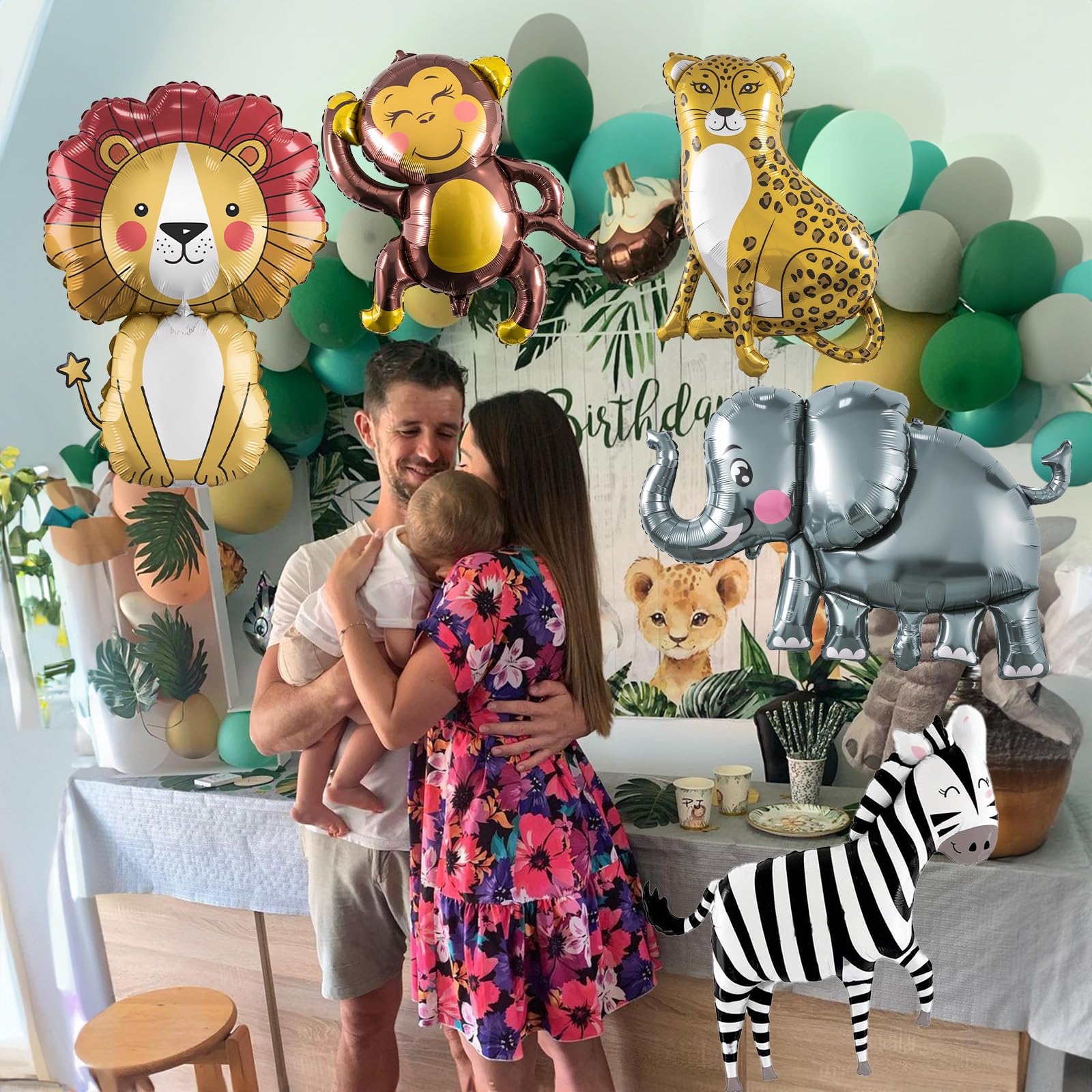 🐾 Jungle Safari Animals Balloons: You will get 5 pieces large safari smile animal foil balloons, include lion balloon (50x77cm), leopard balloon (60x76cm), elephant balloon (80x55cm), zebra balloon (84x63cm), monkey balloon (60x76cm), with 1pc balloon ribbon.