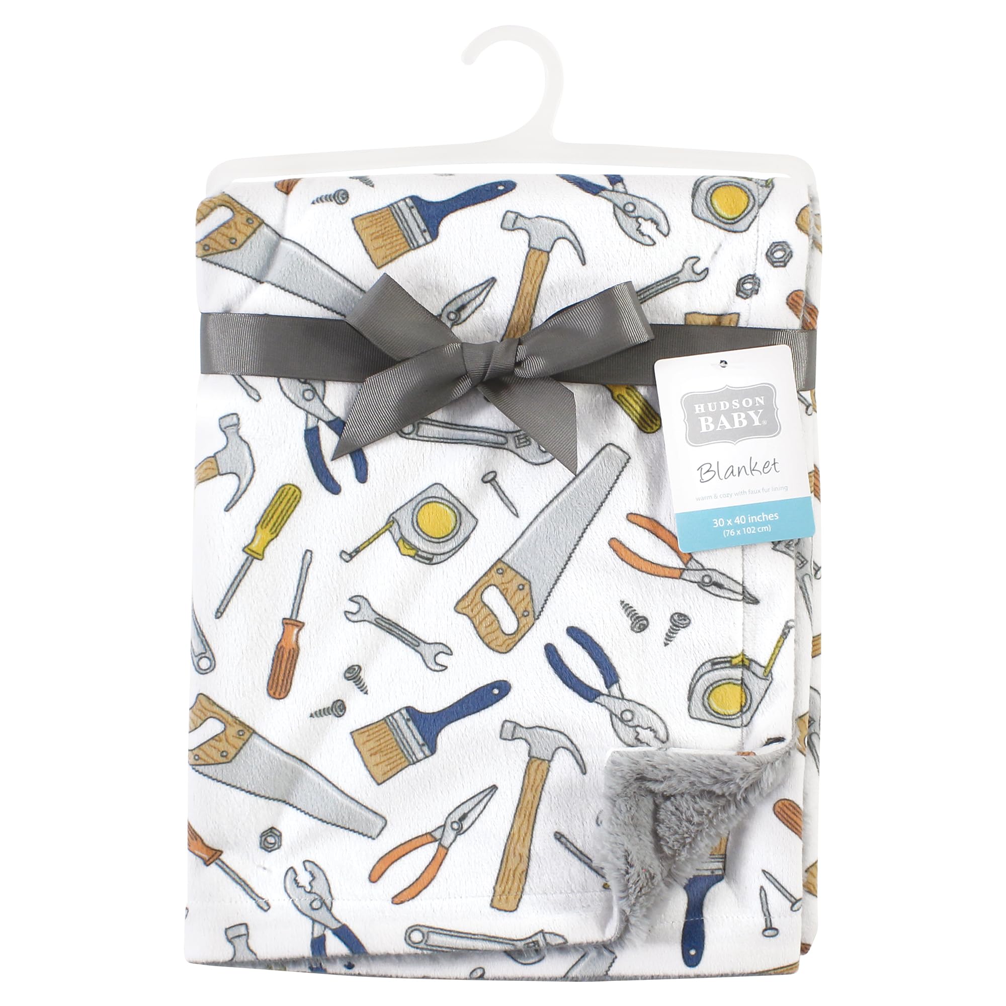 Hudson Baby plush blanket with furry binding is a super soft, warm and cozy baby blanket to add to your little one's nursery. Measuring 30x40 inches, our blanket is soft and gentle on baby's skin and great for everyday use. Our blanket is great for snuggle and sleep, but also as a stroller cover, car seat blanket and more.