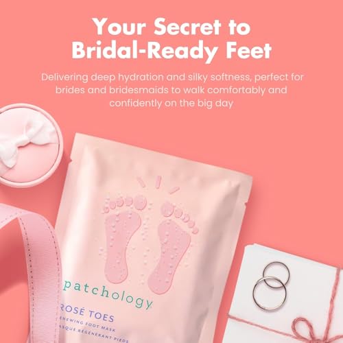 ENHANCED SKIN HYDRATION: Patchology's Rosé Toes Foot Mask deeply moisturizes and rejuvenates dry skin. The advanced formula fortifies the skin barrier, delivering long-lasting hydration for soft, protected feet. Ideal for bridal self-care gifts or bridesmaid essentials.