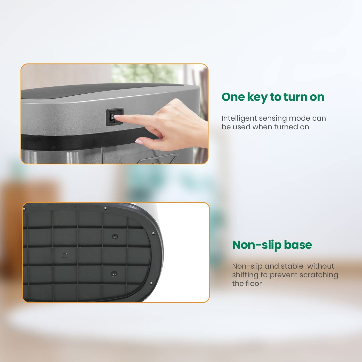 【Easy To Clean & Isolate Odors】:This trash can is easy to clean due to our stainless steel design. While the sealed exterior and infrared technology ensures odor is contained.
