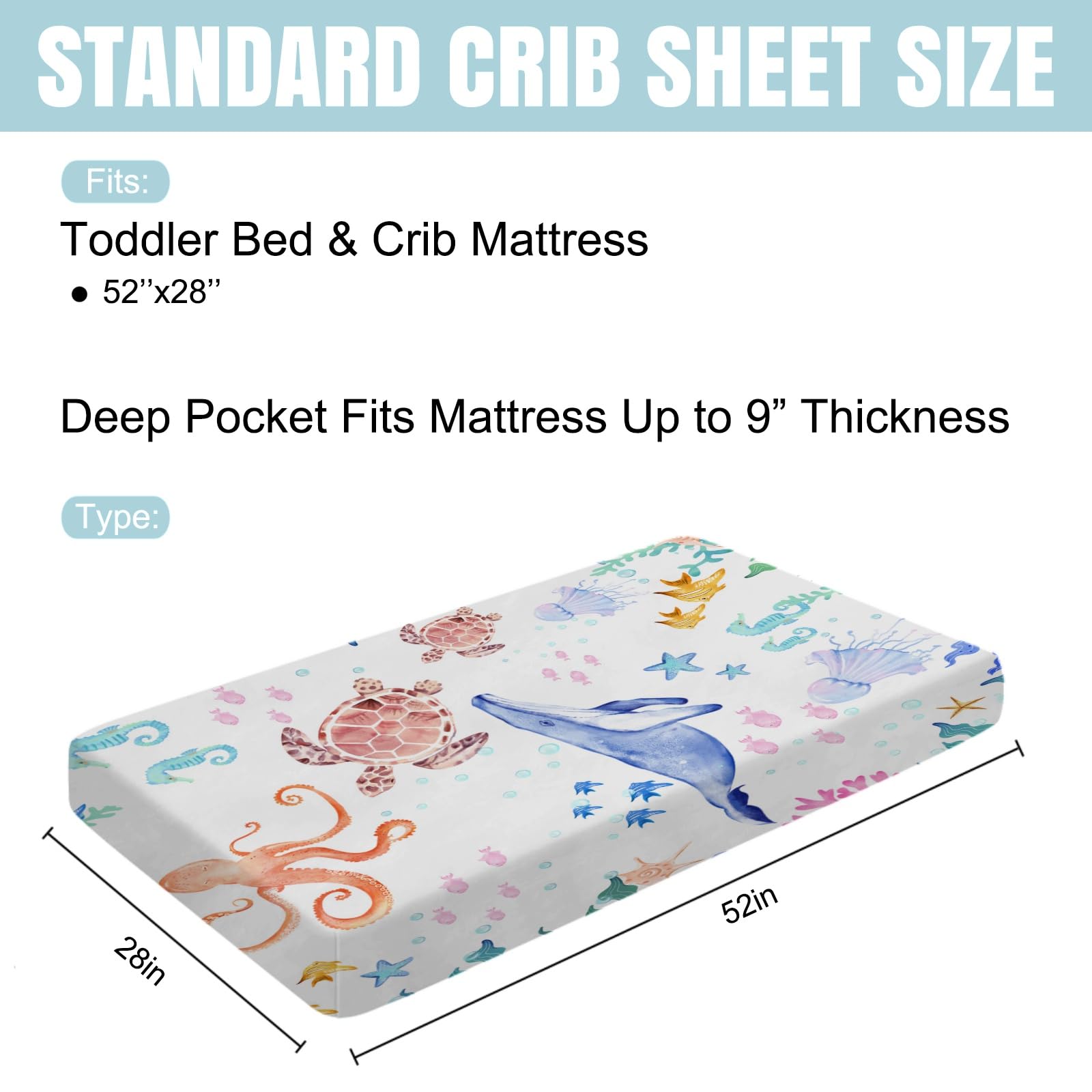 【Size:】The baby crib sheets are sized for a standard sized crib or infant mattress (52 in. by 28 in.) Designed with an elastic band for easy application and removal.