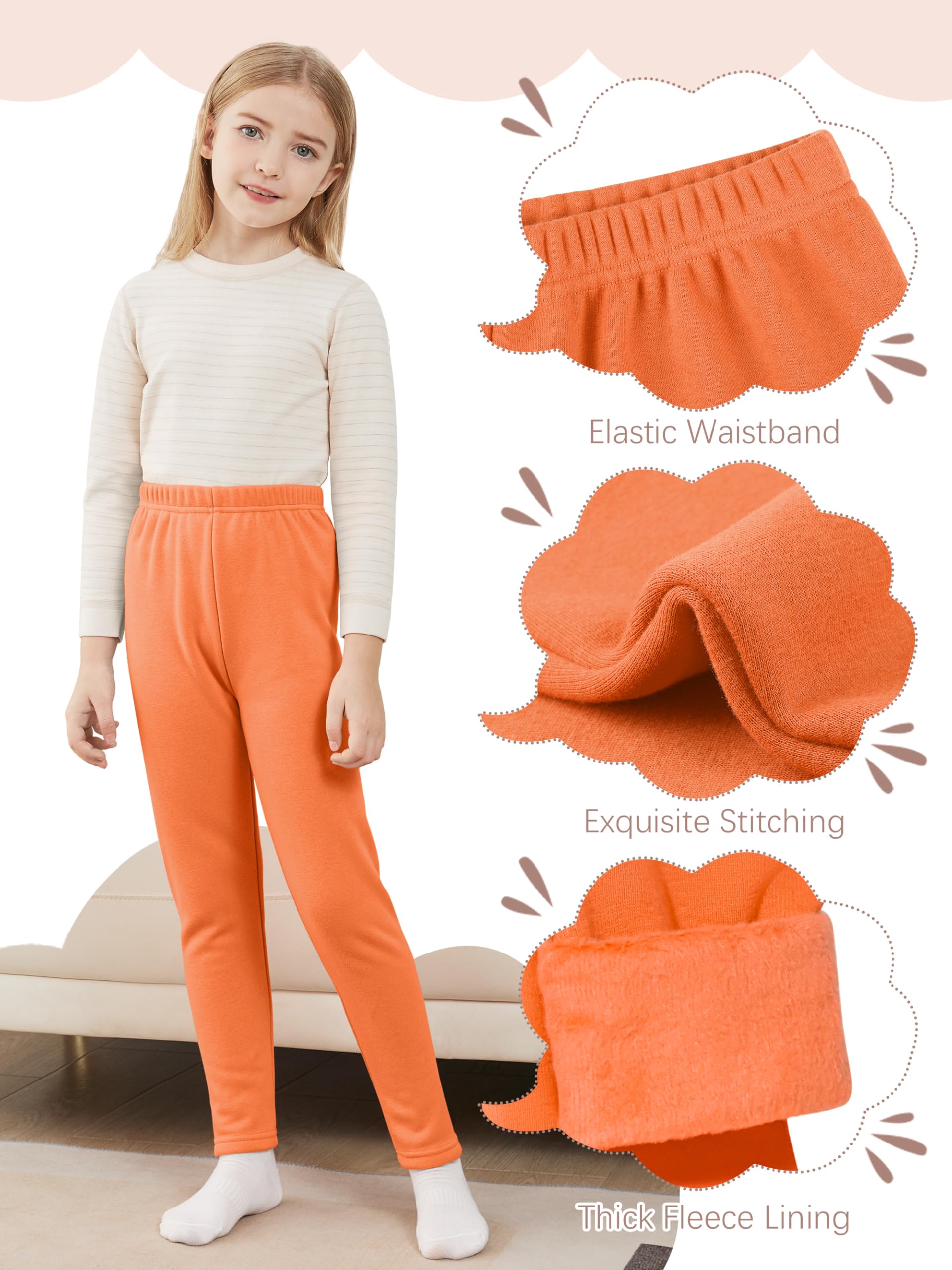 FLEECE LINED LEGGINGS: The outer layer of these warm leggings for girls is made of pure cotton and they are lined with fleece, making them elastic, soft, comfortable, and with excellent warmth
