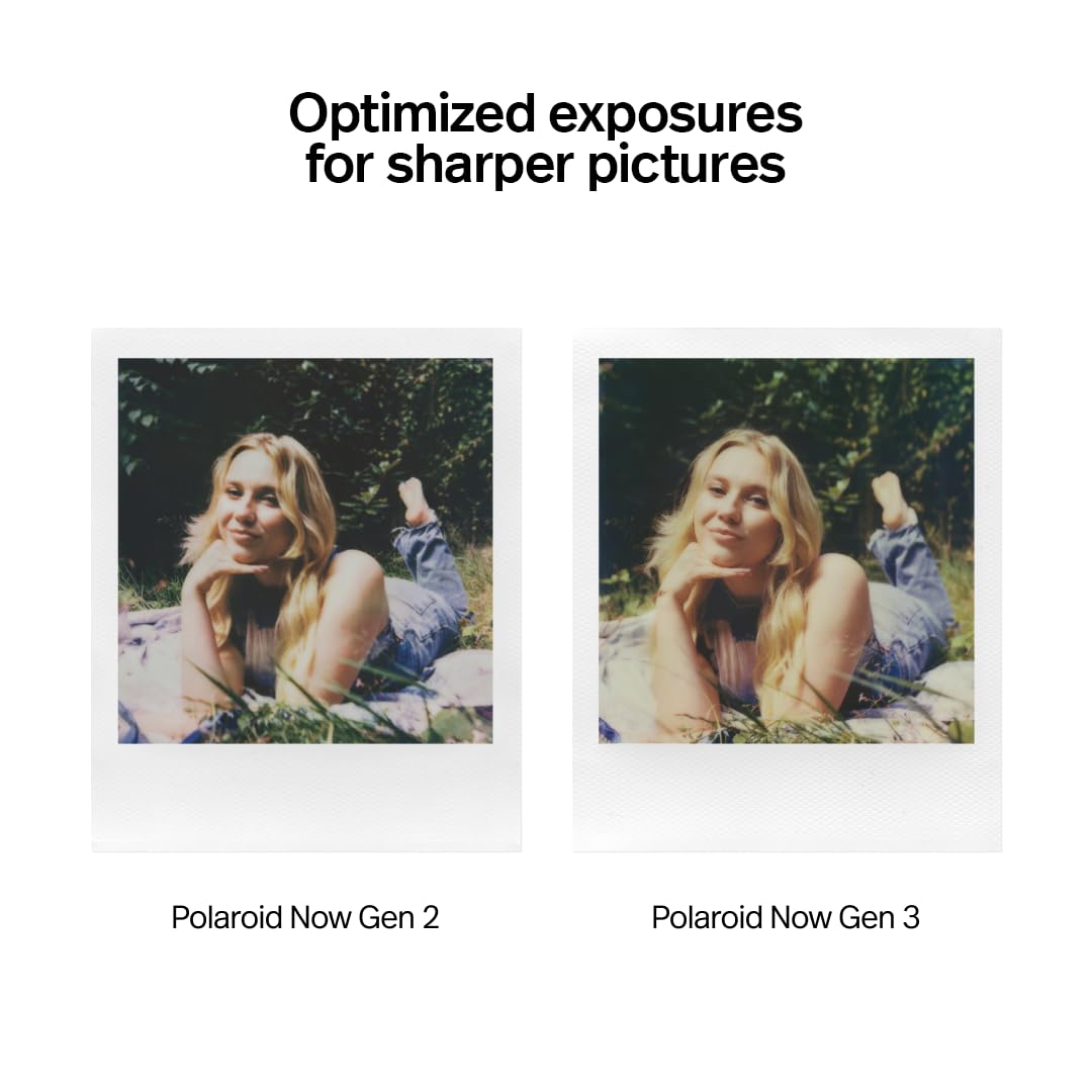 Polaroid Now Instant Camera Generation 3. The classic analog Polaroid Now Generation 3 Instant Camera has been optimized for sharper pics in bright lighting. Featuring upgraded light meter position, ranging sensor and two-lens autofocus system. Plus, built-in tripod mount, filter compatibility and self-timer and double-exposure modes. All in a classic Polaroid look, available in six new colors and compatible with iconic, full-sized Polaroid i-Type Film.