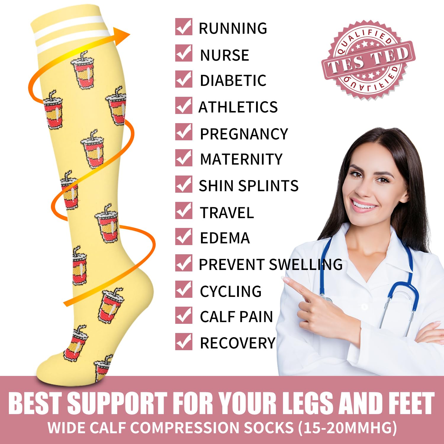 6 PACK OF COMPRESSION SOCKS - You no longer have to settle.Our design of comfort and style comes at a very affordable price in comparison.There are available in different fabrics and colors.They are discreet and look like the ordinary socks you have already wear to work.Our socks are universally suitable for all work.Whether you are an athlete,teacher,flight,crew,receptionist,office,worker,pregnant, elderly ,they'll work for you as you work for yourself and your family.