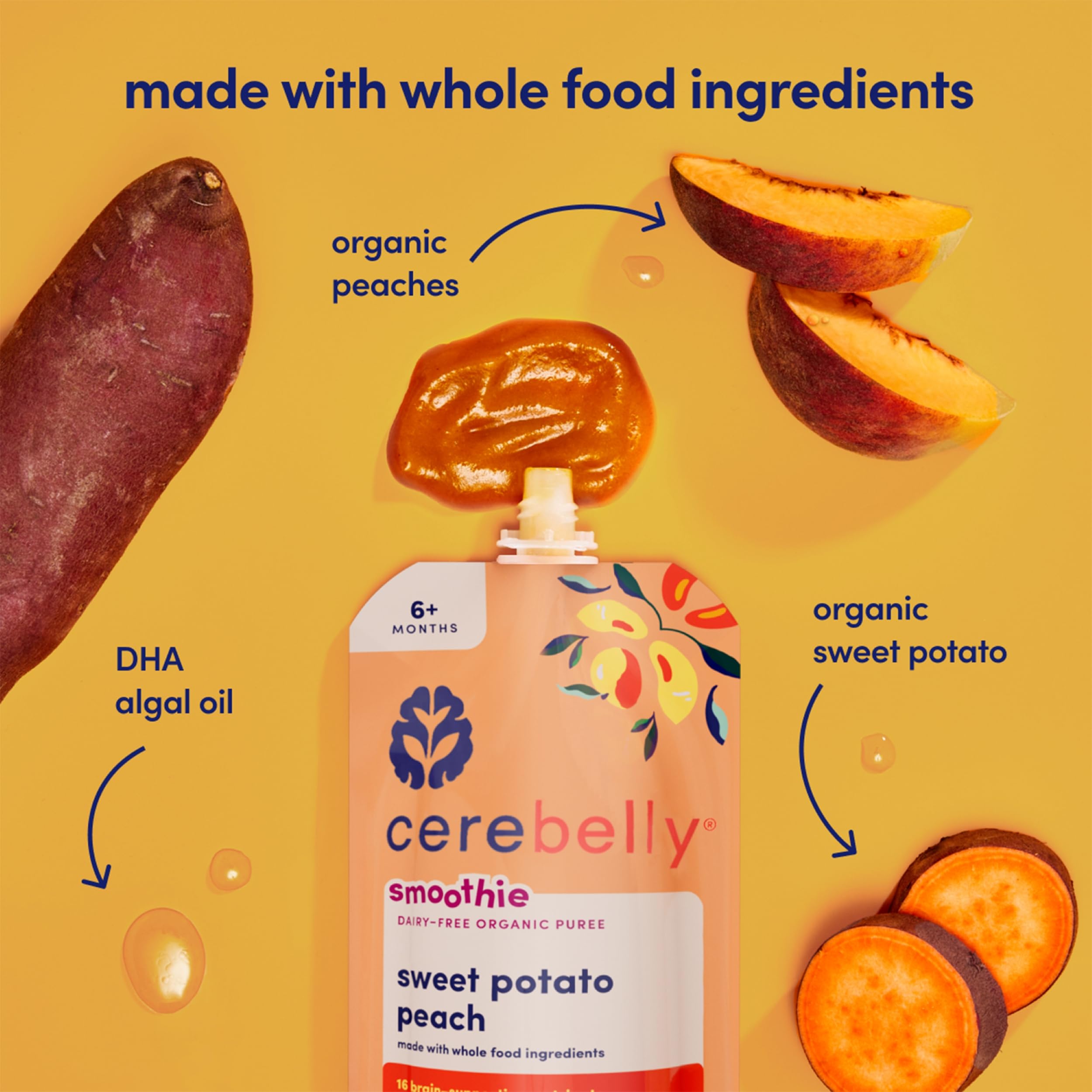 VEGGIE FIRST & NO ADDED SUGAR β Made with sweet potato & peach, no added sugar, gluten, dairy or nuts