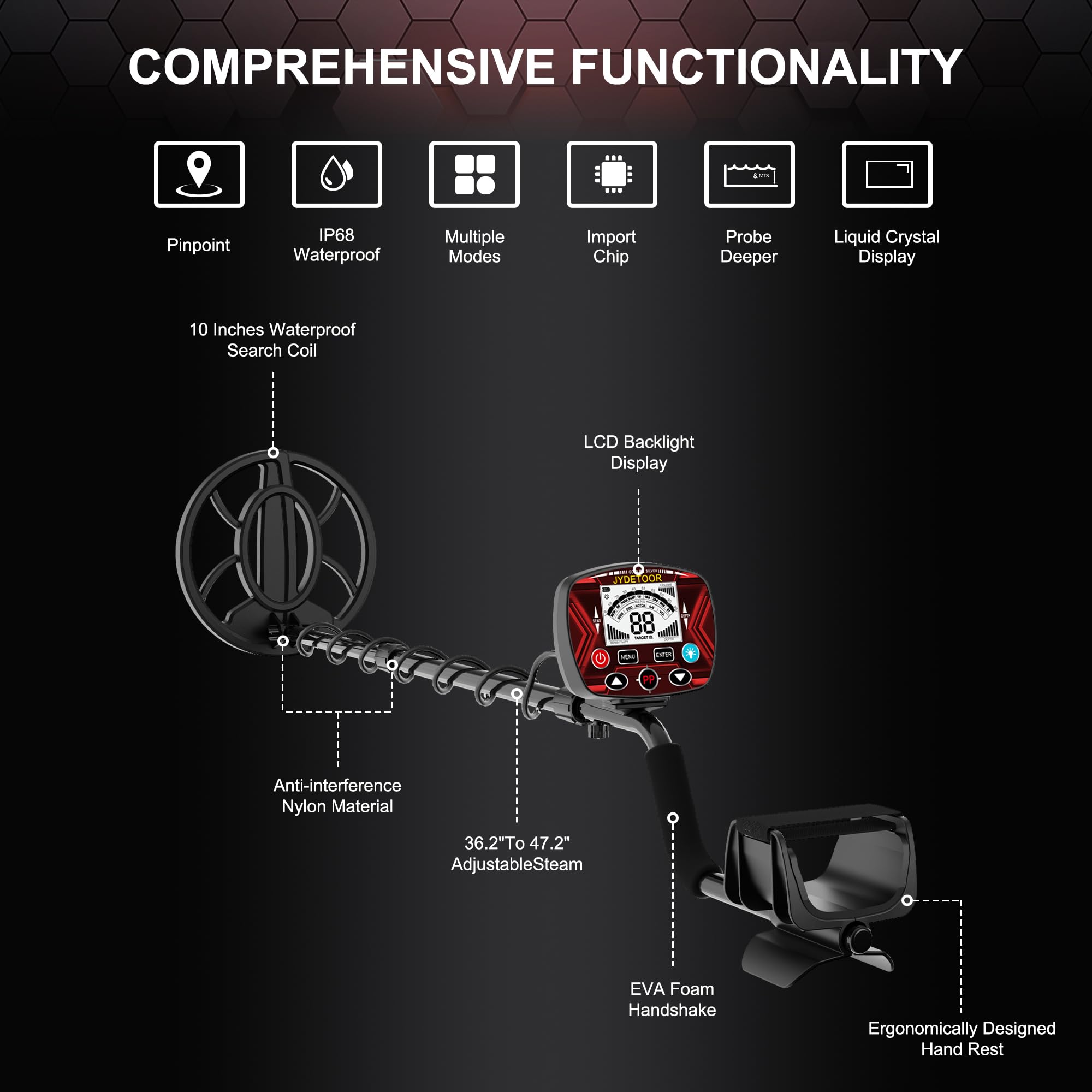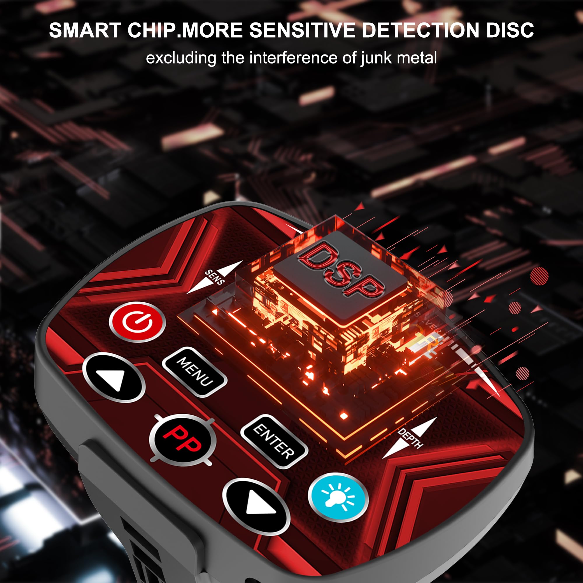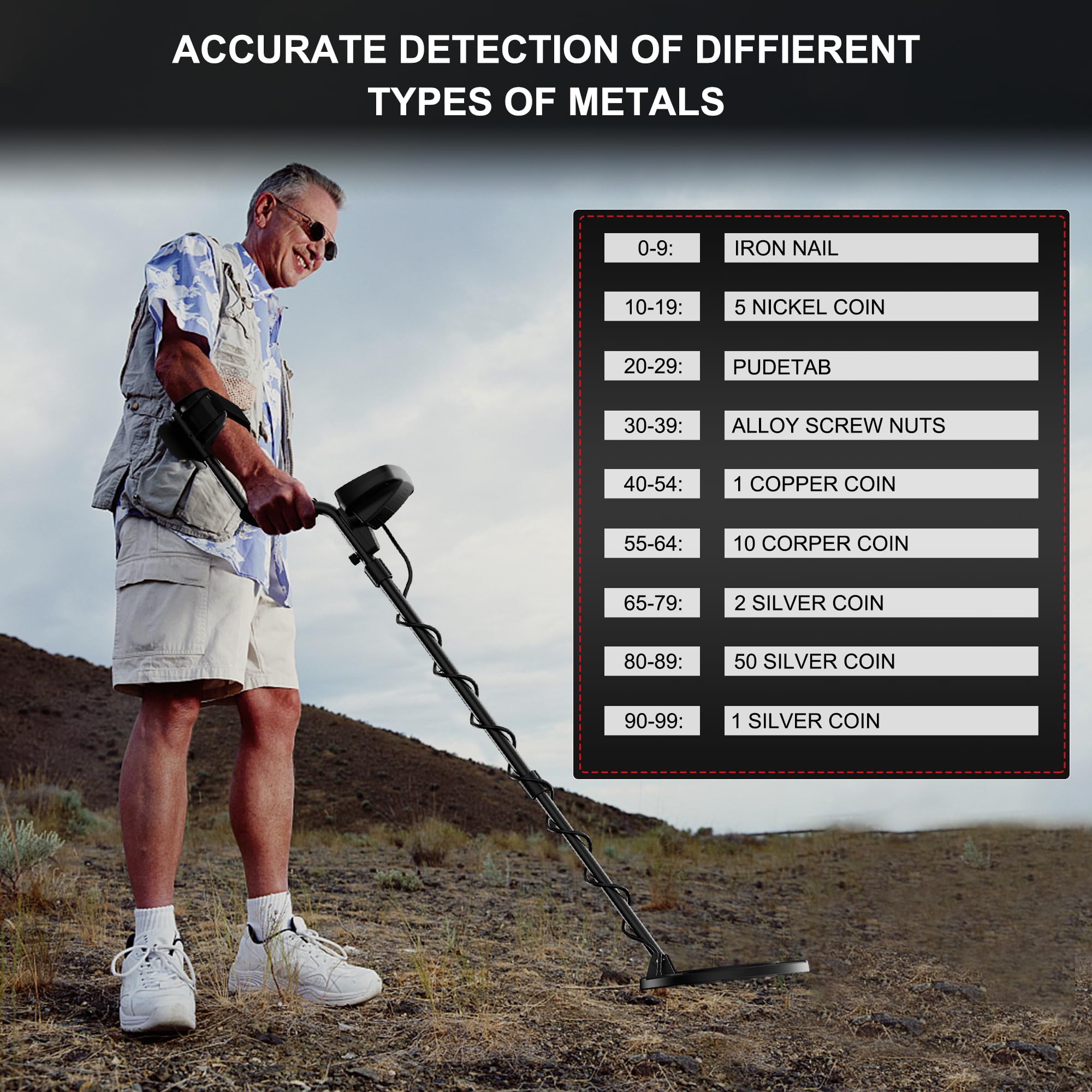 Upgraded DSP Chip: Equipped with an Upgraded DSP chip, made in the USA, which has higher accuracy, strong anti-interference, higher sensitivity, and a wider search range, greatly improving detection efficiency over other metal detectors. This metal detector may locate a US Quarter up to 10" underground. The greater the detection depth, the higher the sensitivity, allowing you to detect more efficiently and time-saving.