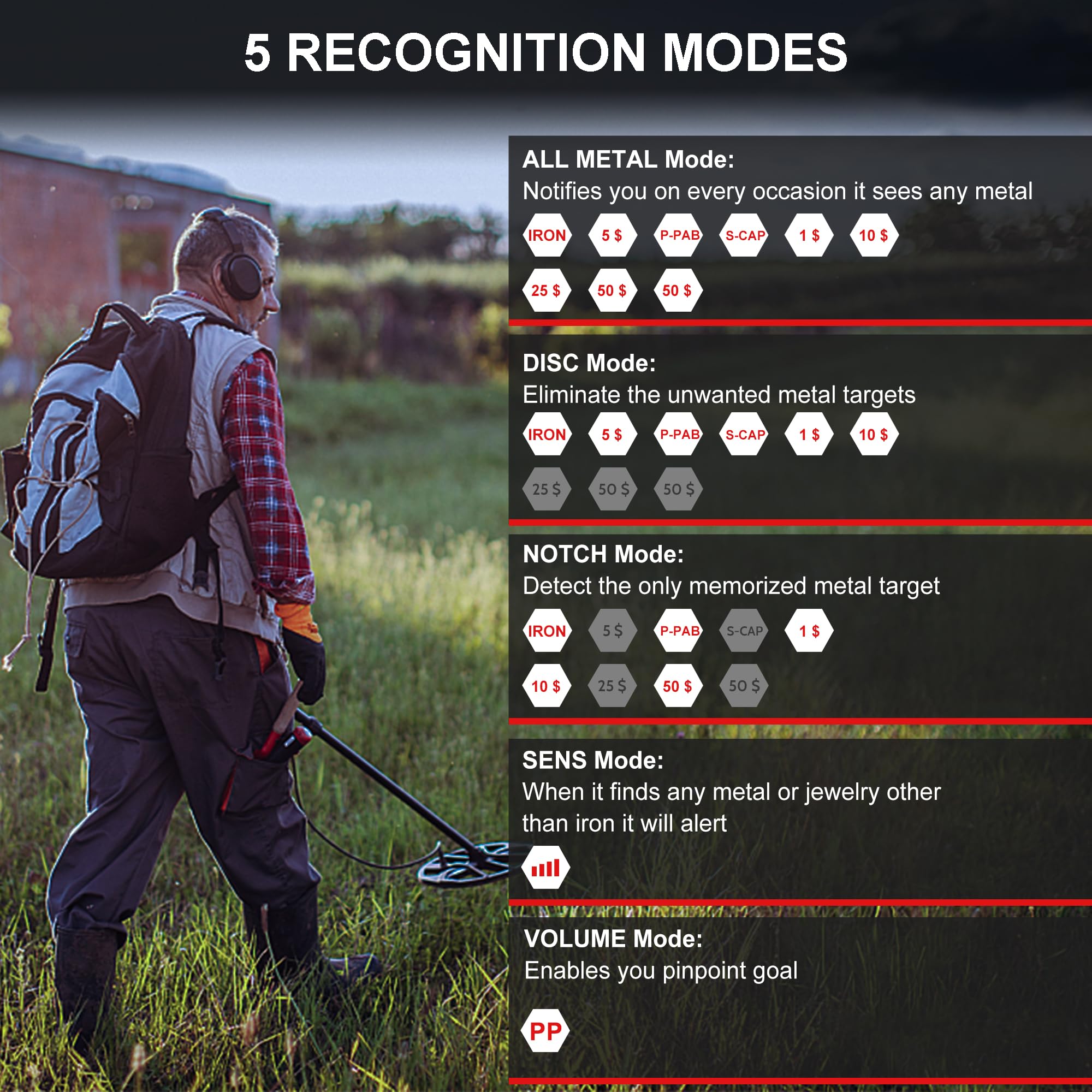 Top Metal Detectors: Offers 6 upgraded modes including All metal, Discrimination, SENS Mode, Pinpoint Mode, NOTCH Mode and VOL Mode. The innovative Memory function remembers one kind of metal and only detects that specific type for next time. Allow you to effectively search for the desired 9 metal targets. This adults kids metal detector is an exciting new addition for both professionals and enthusiasts.
