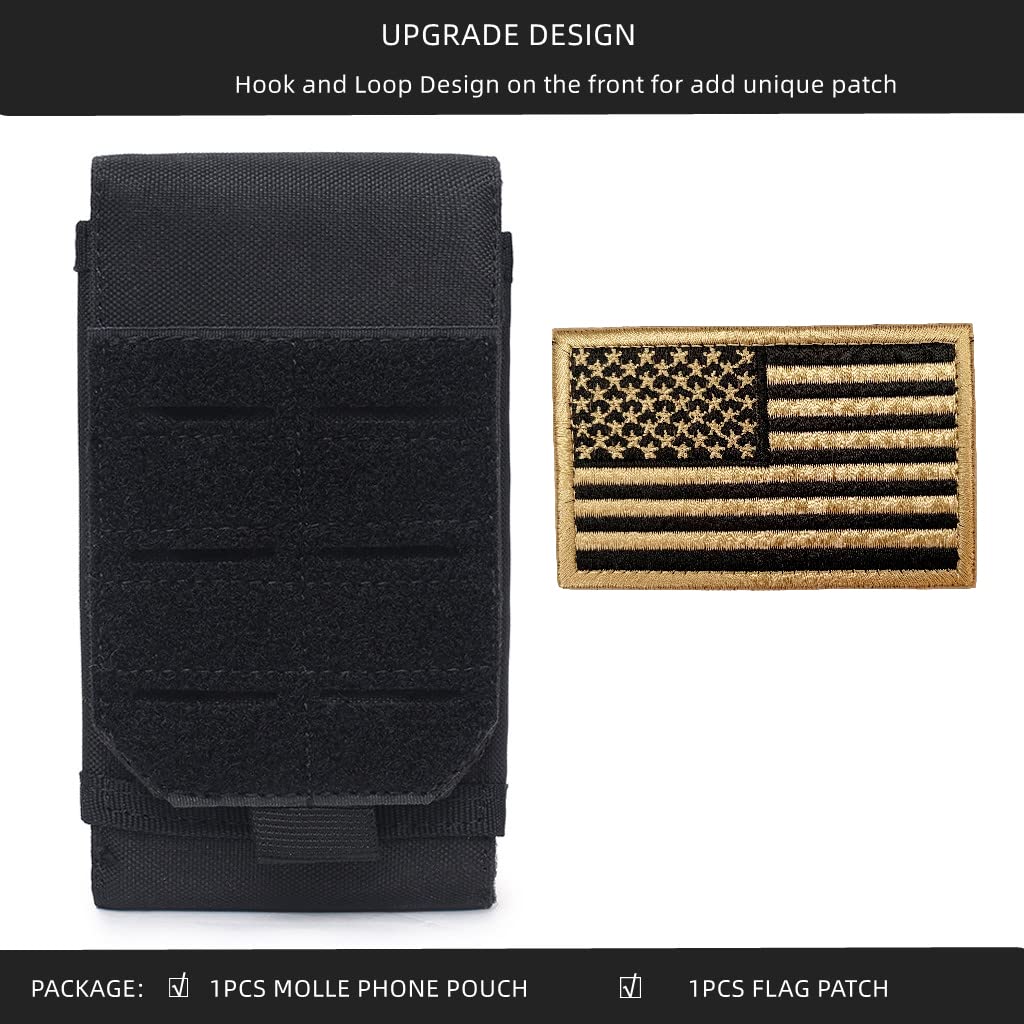 ➤UPGRADE DESIGN: Hook and Loop Design on the front for add unique patch, Can paste a variety of personality Patches. Package Included: 1 pack Molle Phone Pouch + 1 pack US Flag Patch.