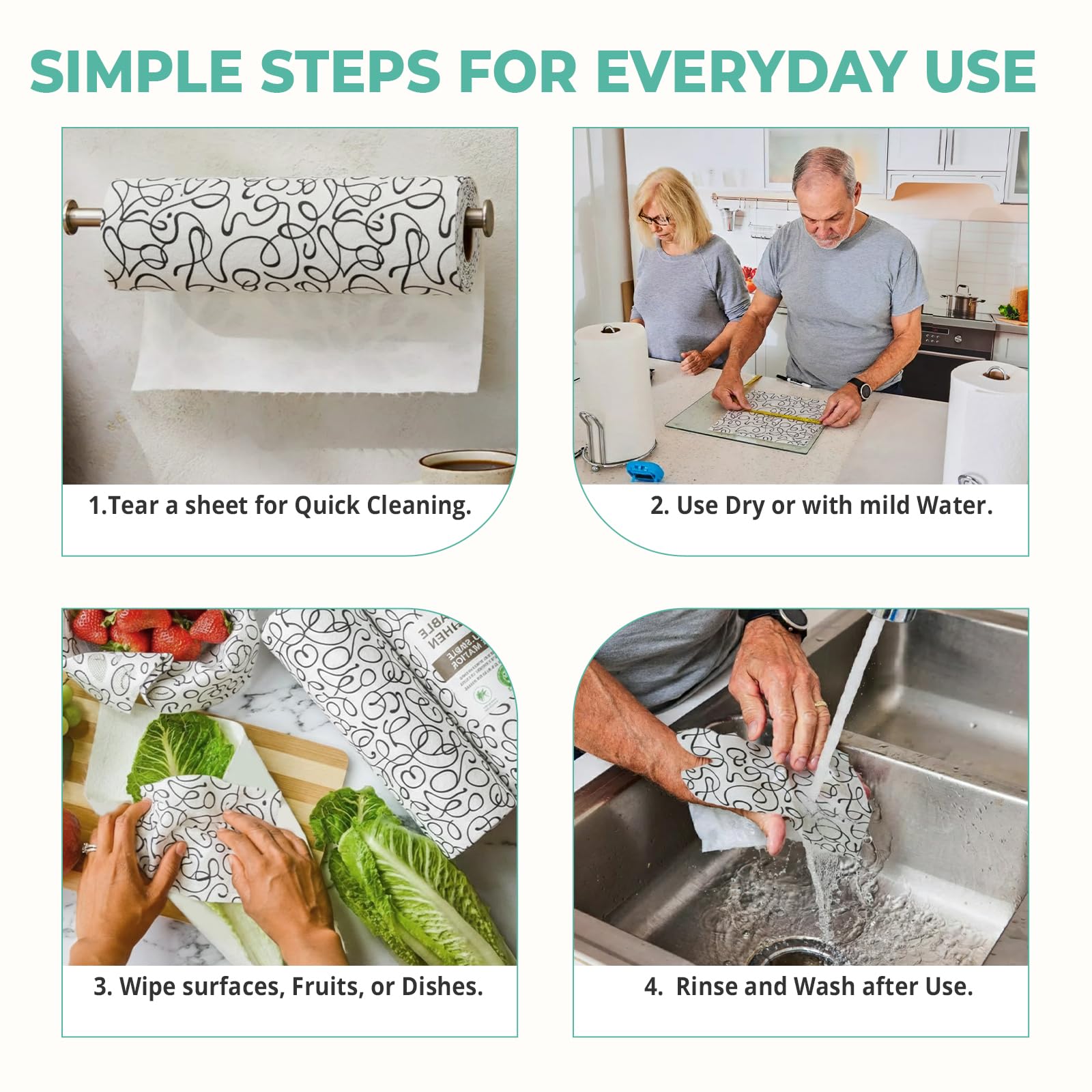 Kid & Pet Friendly: These rolls are kid and pet friendly. The pack contains 4 rolls, with each roll having 20 sheets, with each sheet lasting 50 uses. You can do the math. These will last forever and are perfect alternative to traditional rags or sponges for cleaning the home, bathroom, kitchen, and more.