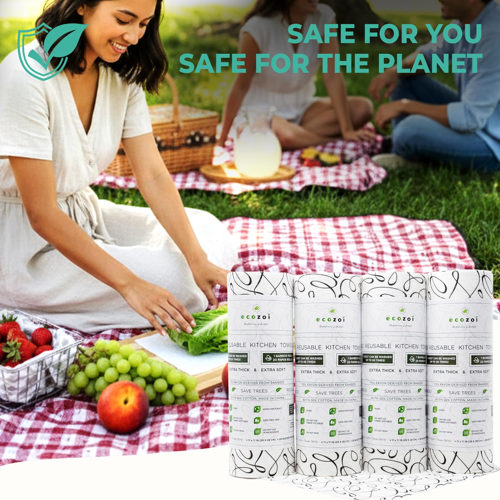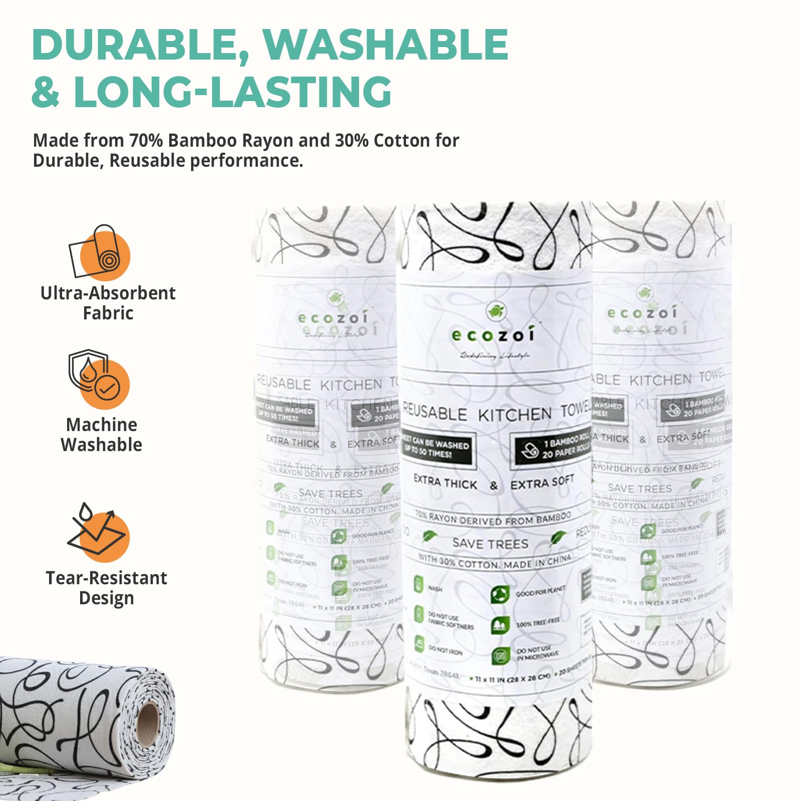 Reusable, Washable, & Tree Free: These paper towels are made from 70% Rayon from Bamboo, and 30% cotton. Unlike tree paper rolls, these do not contribute to deforestation, but help save trees and reduce carbon footprint.