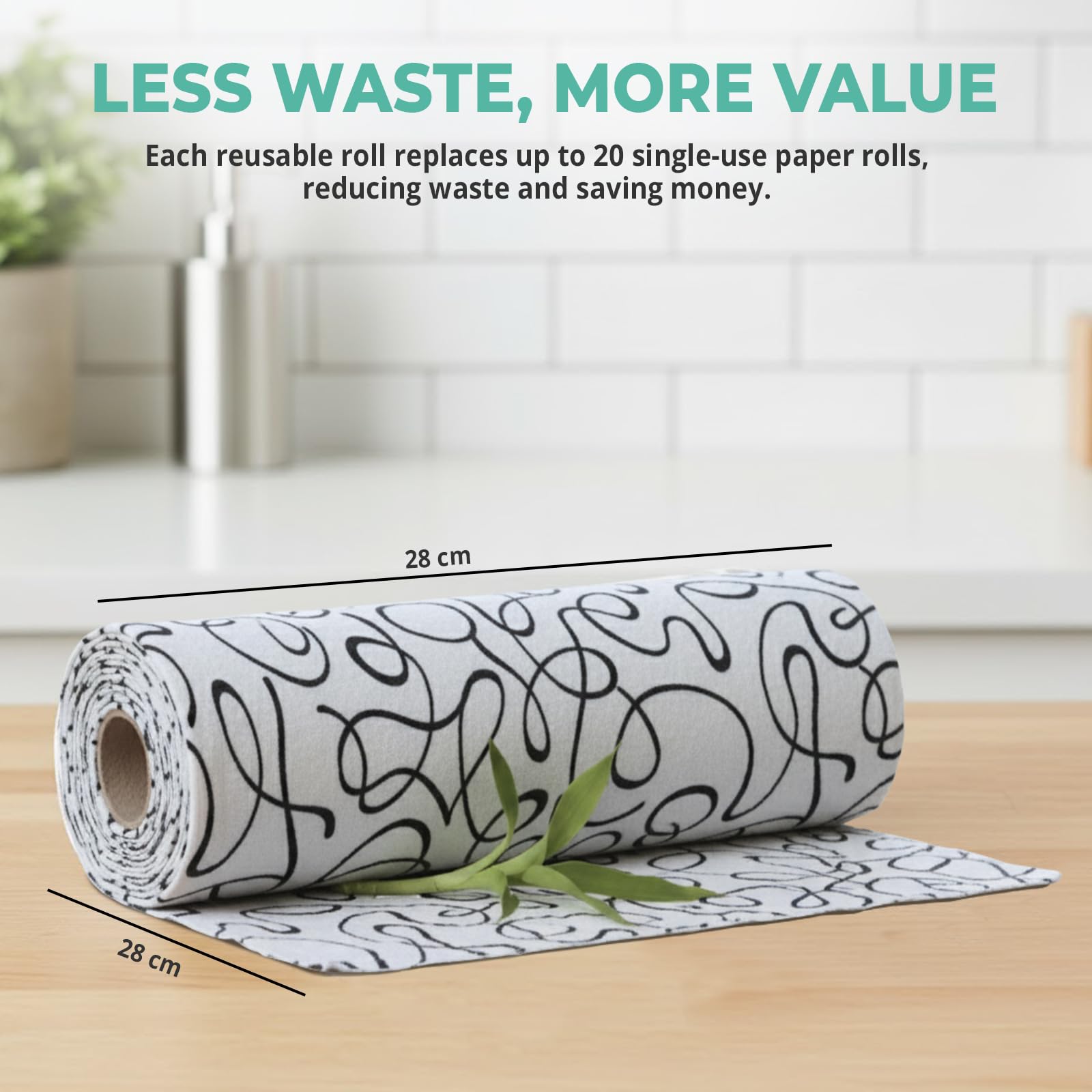 Strong, Durable, & Super Absorbent: Our super absorbent 2 ply sheets are strong and durable. Each sheet lasts up to 50 uses making each roll equivalent to 20 regular paper rolls. Best part is, they’re disposable once you use them up.