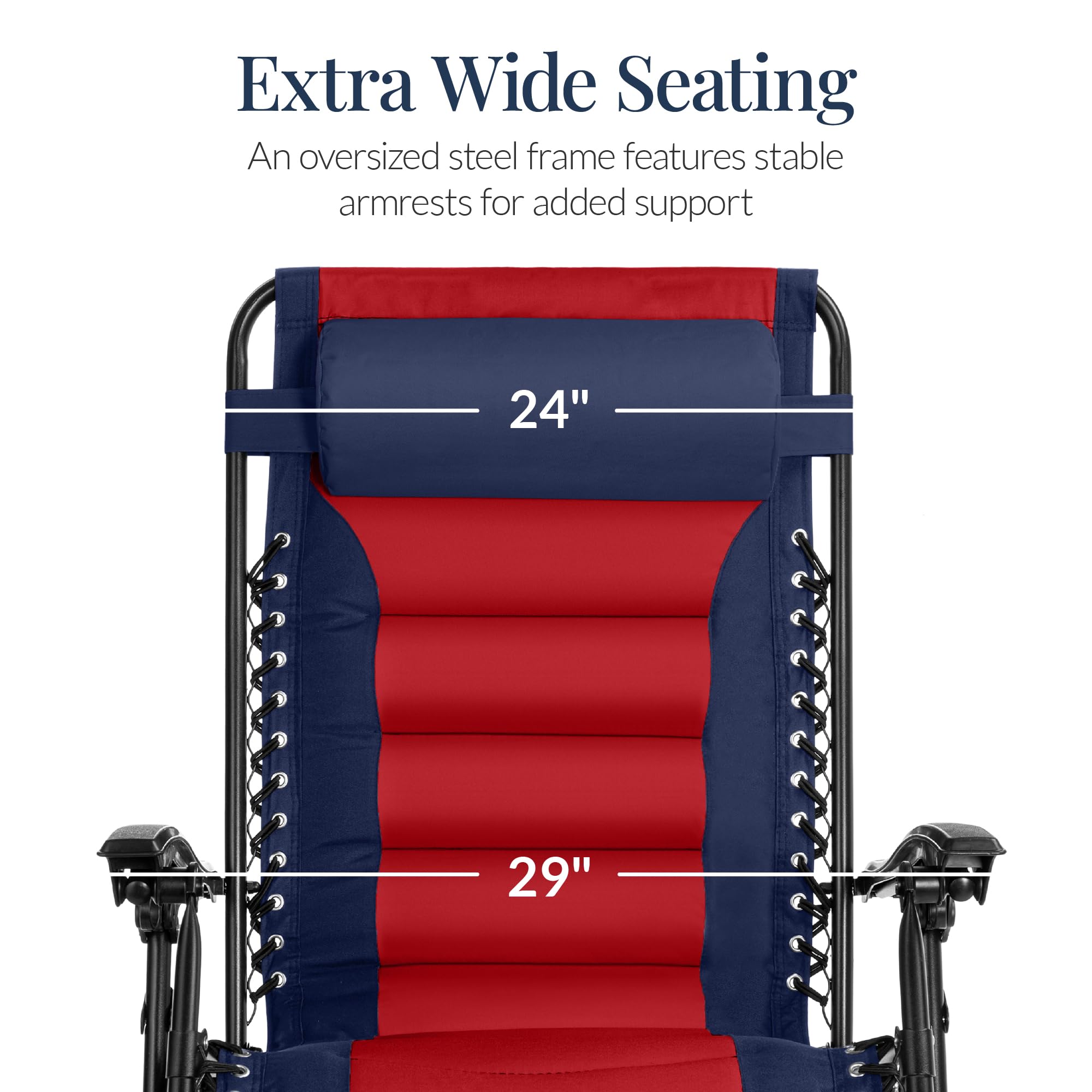 LOCKABLE RECLINING SYSTEM: An extra-wide seat smoothly glides into an ergonomic zero-gravity position with a system of locks and elastic for extra support; OVERALL DIMENSIONS: 46"(L) x 29"(W) x 40"(H); WEIGHT CAPACITY: 300lbs.