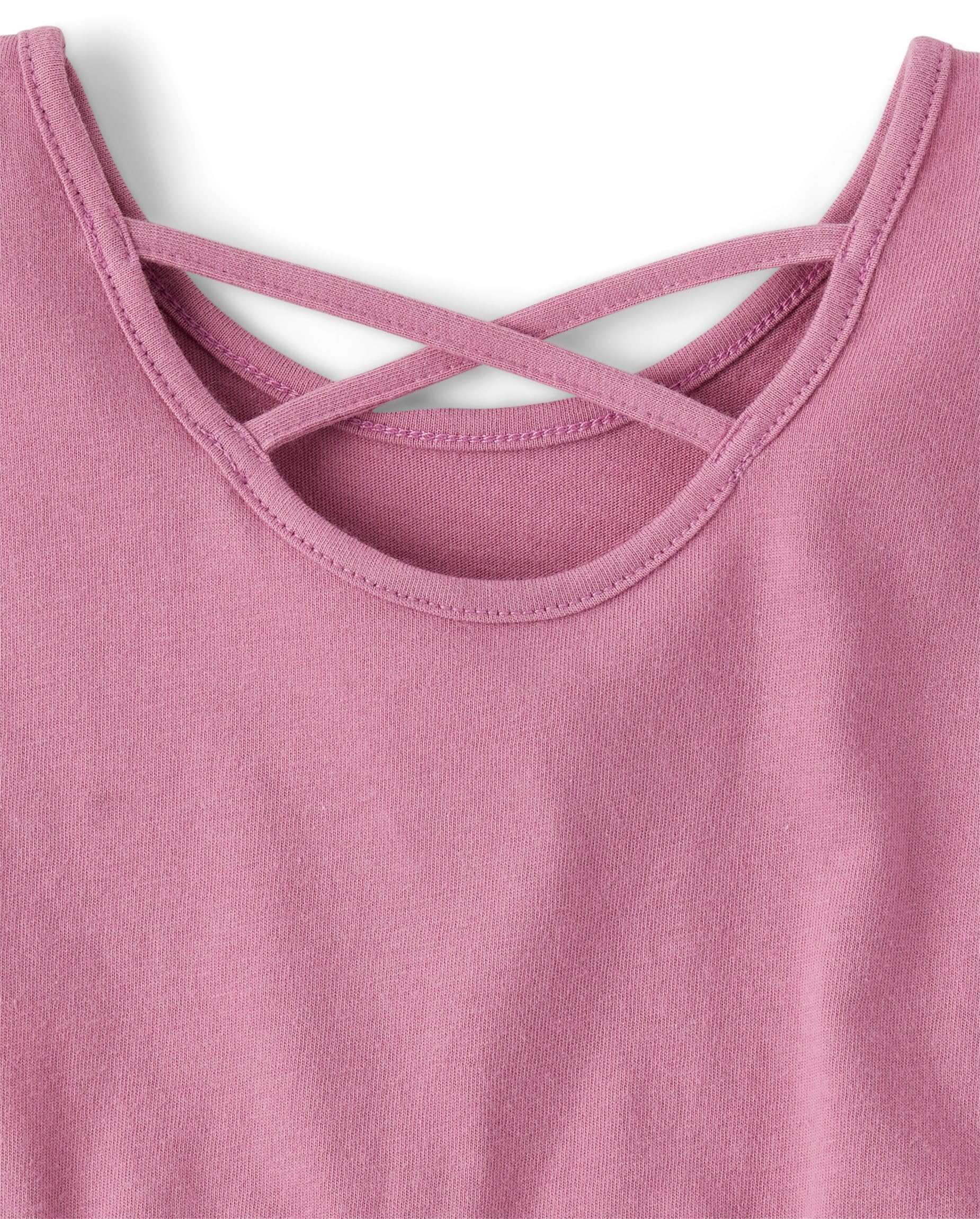 MULTIPACK: 1 'love to dance' ballet slippers graphic with ruffle trim bodice, 2 solid with ruffle mesh peplum hem and criss-cross back
