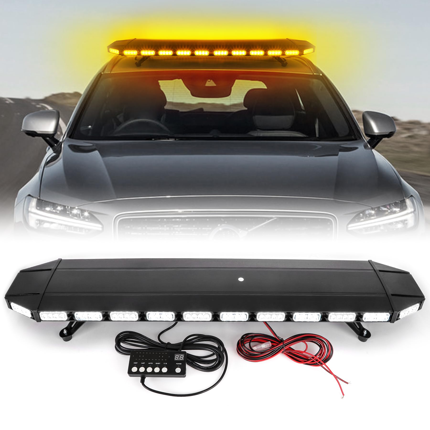 Size - 48in (L) x 9in (W) x 4in (H) , the 48" led emergency warning strobe light bar for emergency workers, bus, postal service, construction vehicle, security hazard warning, and emergency needs.