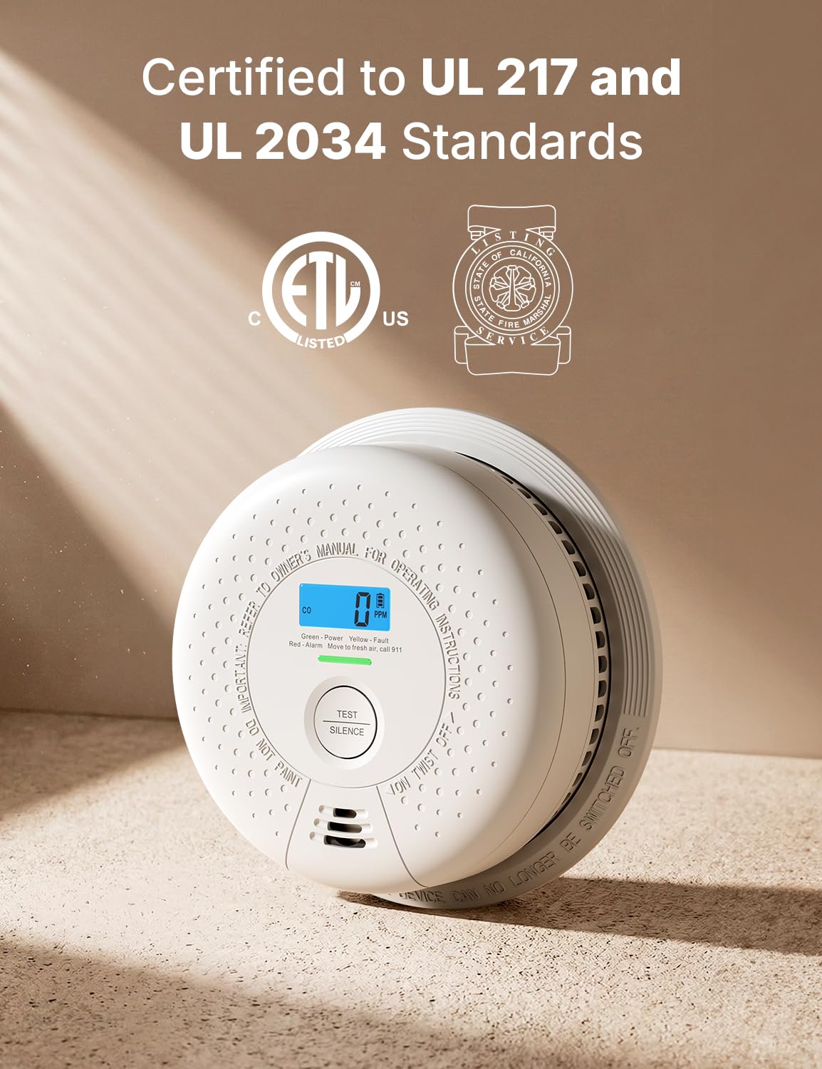 ETL Certified: Meets the UL 217 & UL 2034 safety standards for your peace of mind and absolute confidence in our product
