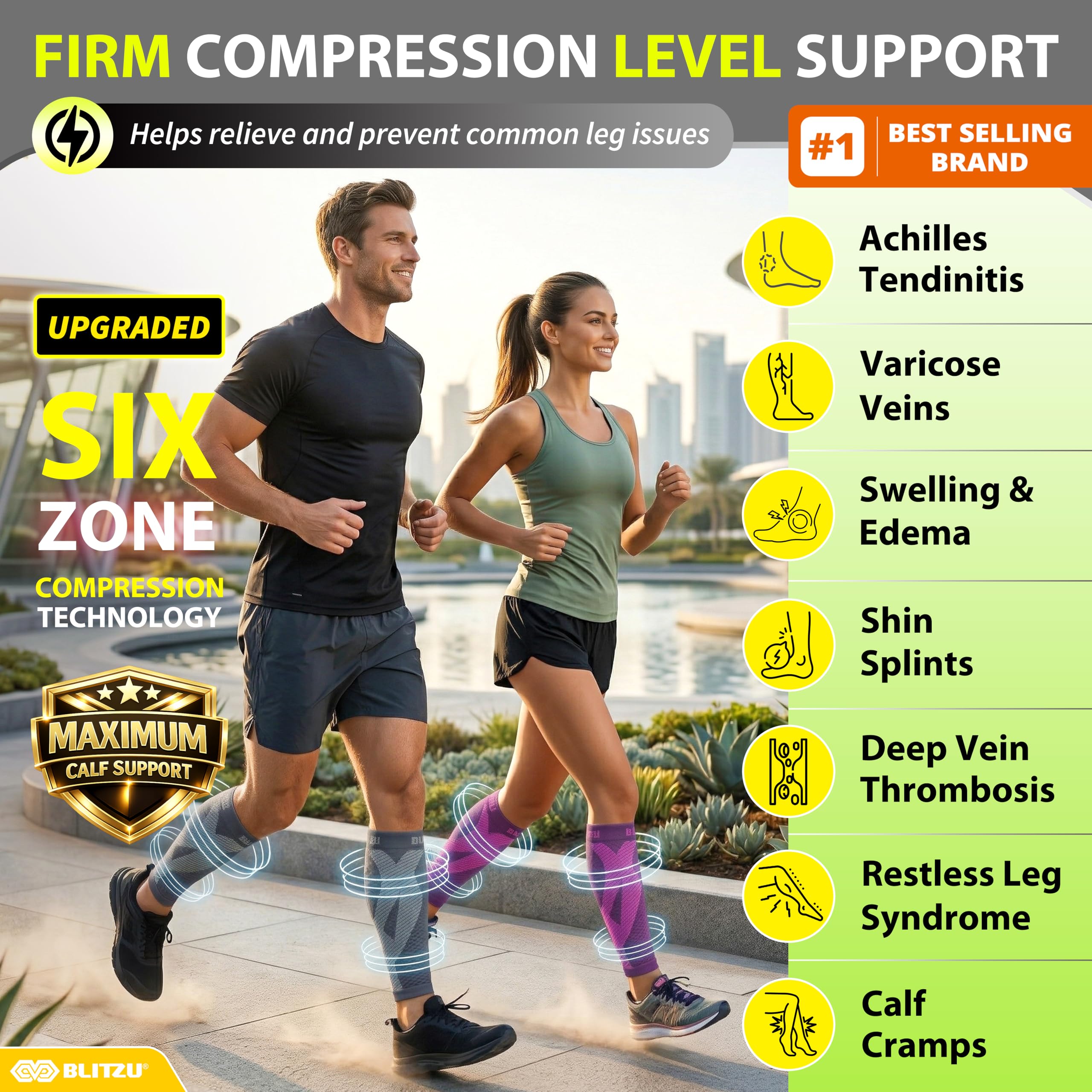 Effective Compression for Swelling & Varicose Veins Relief: The BLITZU Calf Compression Sleeves feature graduated compression to improve blood circulation, reduce swelling, and alleviate discomfort caused by varicose veins and pregnancy-related leg swelling, making them perfect for nursing mothers and individuals with circulation issues.