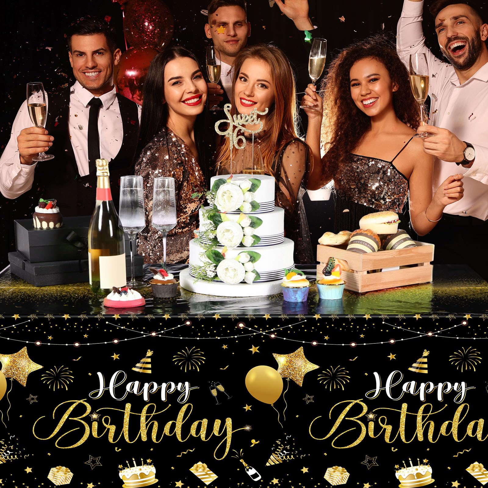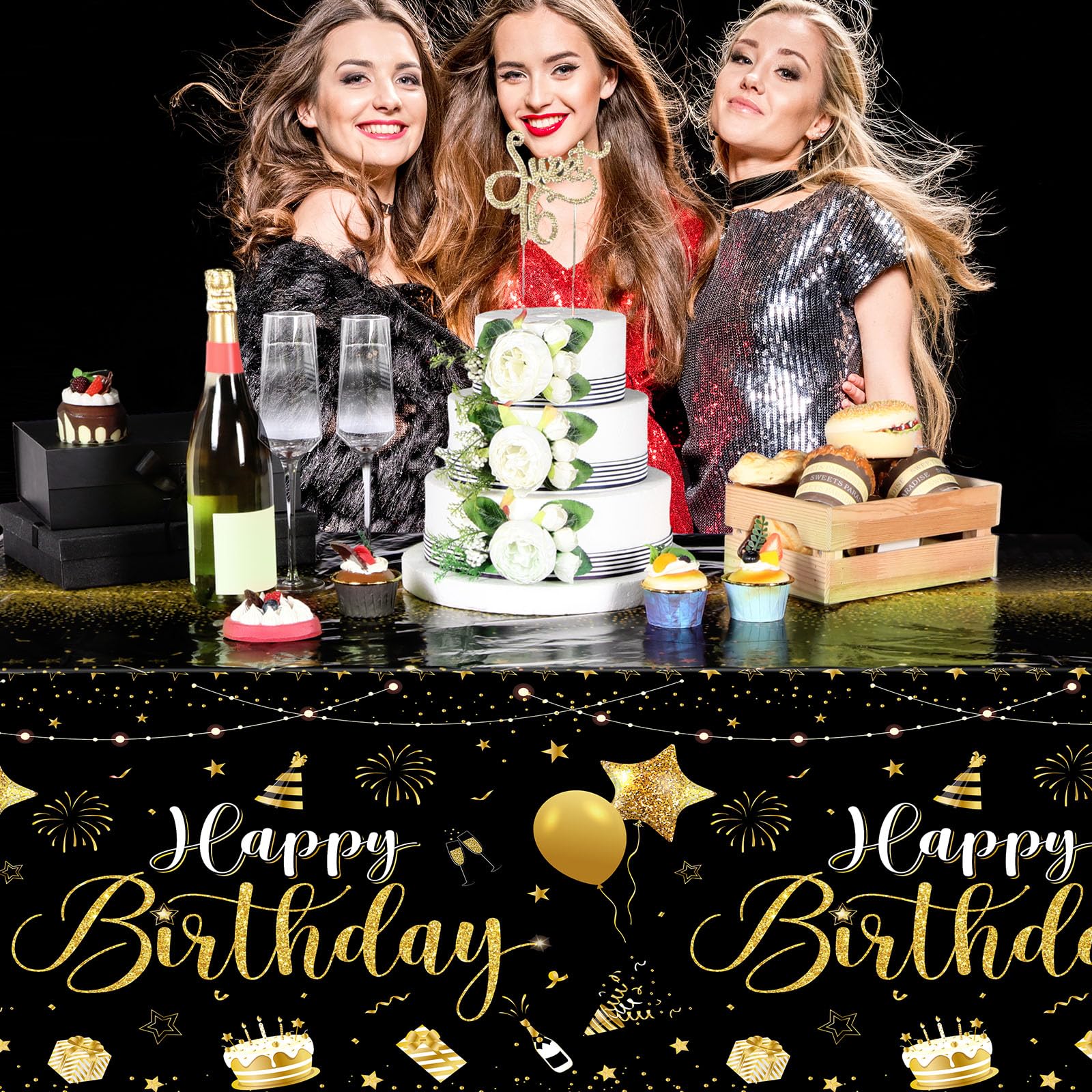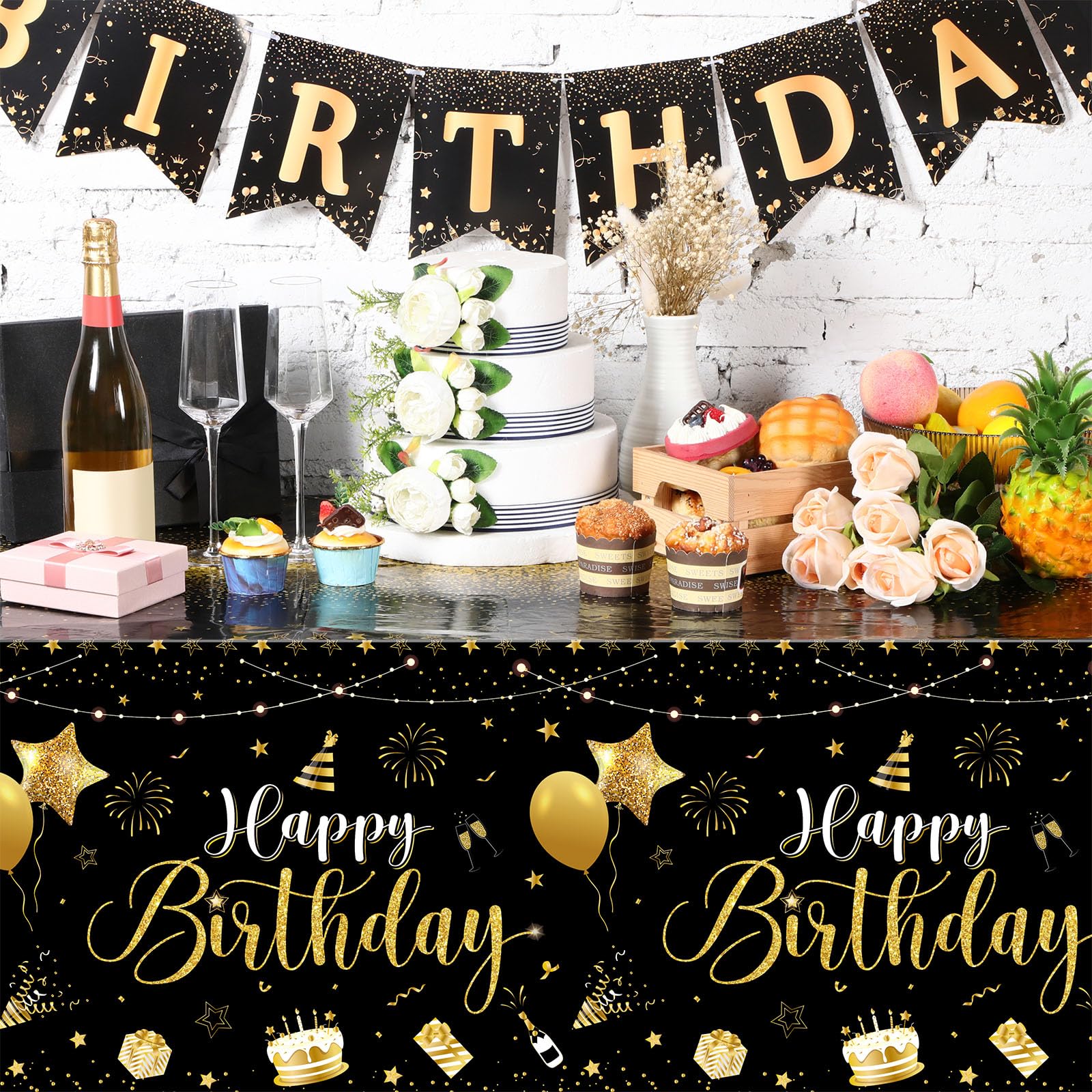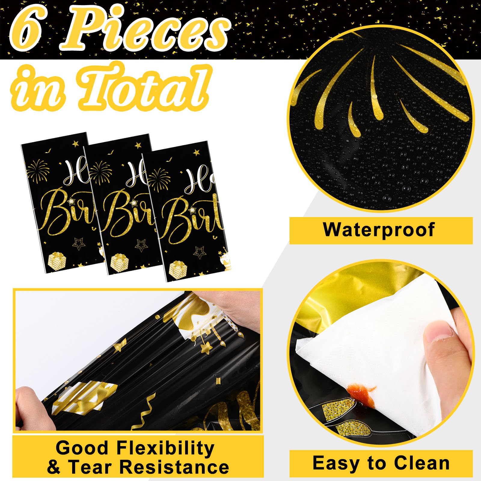What You Will Receive: the package contains 6 pieces of happy birthday tablecloths in classic black and gold colors, enough to meet your using and replacing needs for holding a birthday party