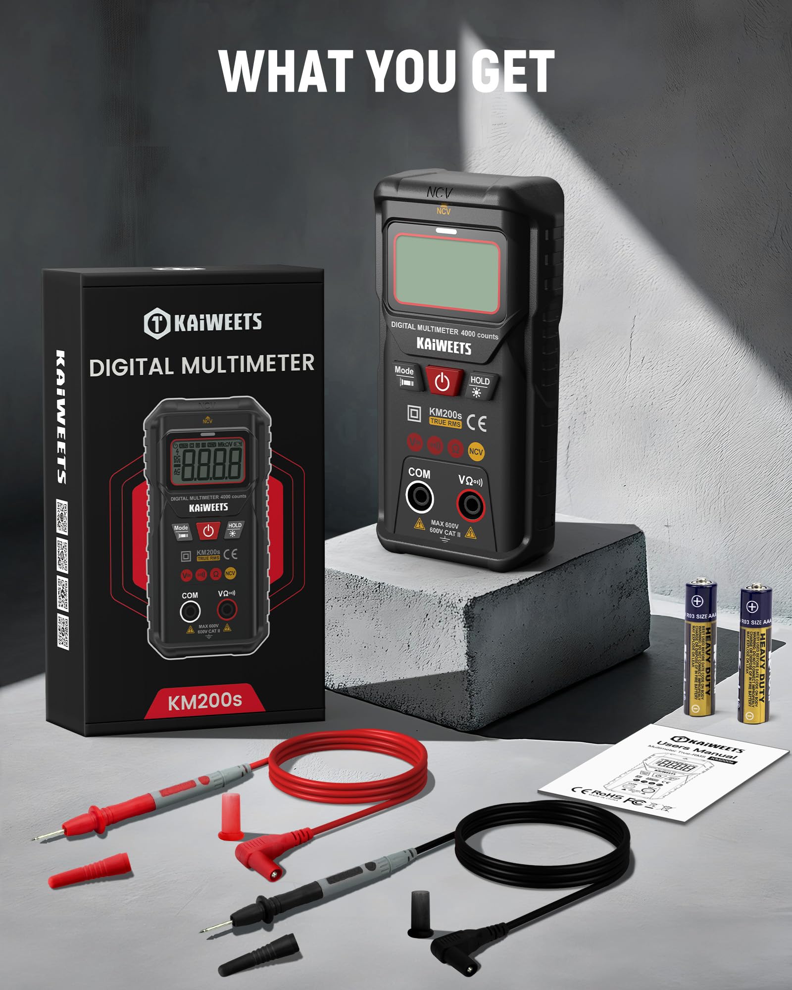 3-Year Warranty: Package includes a KM200s multi meter, 2x test leads, 2x AAA batteries, and user manual. KAIWEETS provides a 3-Year warranty, 24/7h after-sales service, ensuring your purchase is risk-free.
