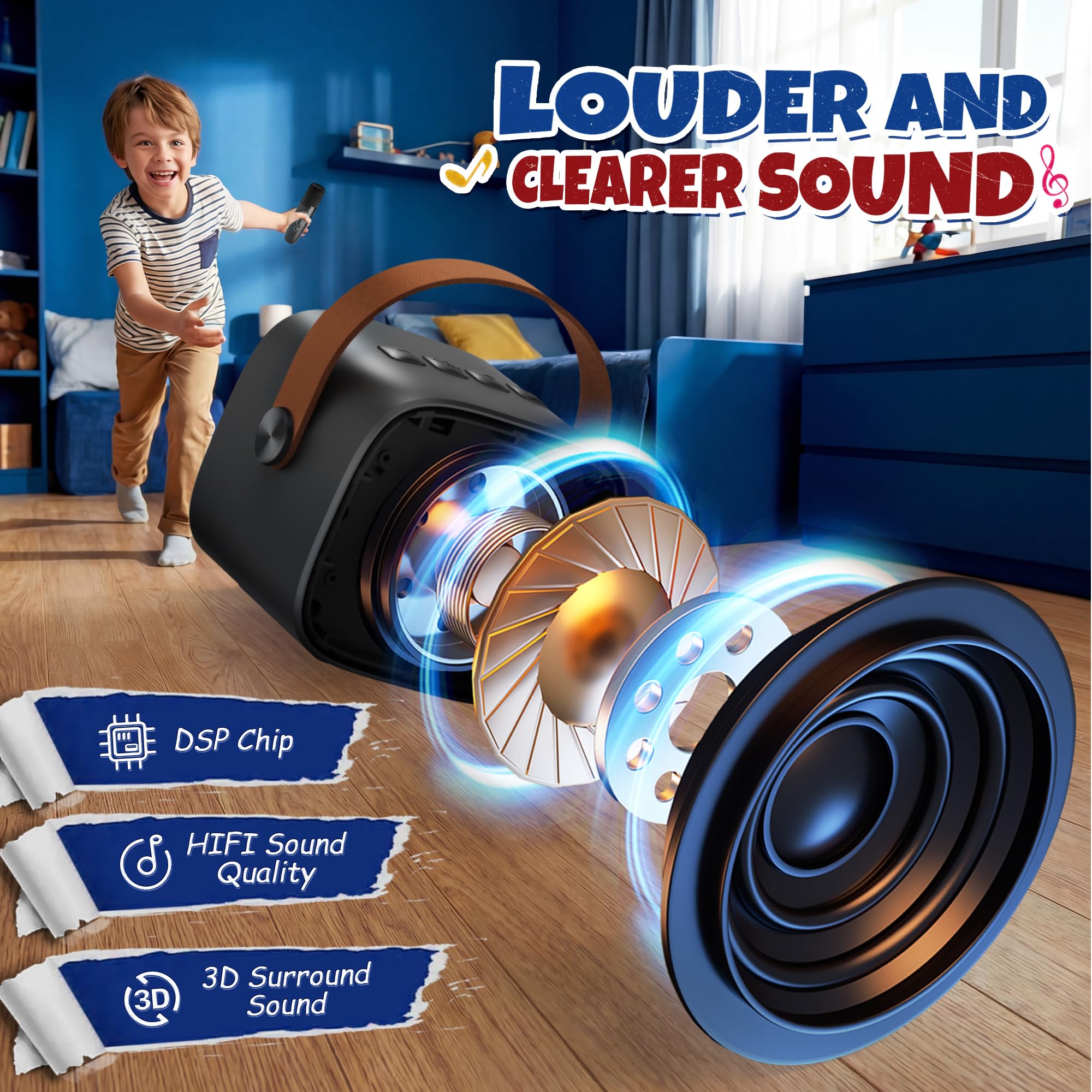 Super Sound Quality: Portable karaoke machine and 2 wireless microphones are equipped with a high-performance audio driver and an advanced digital signal processor, which make the sound clearer and bring you perfect singing experience