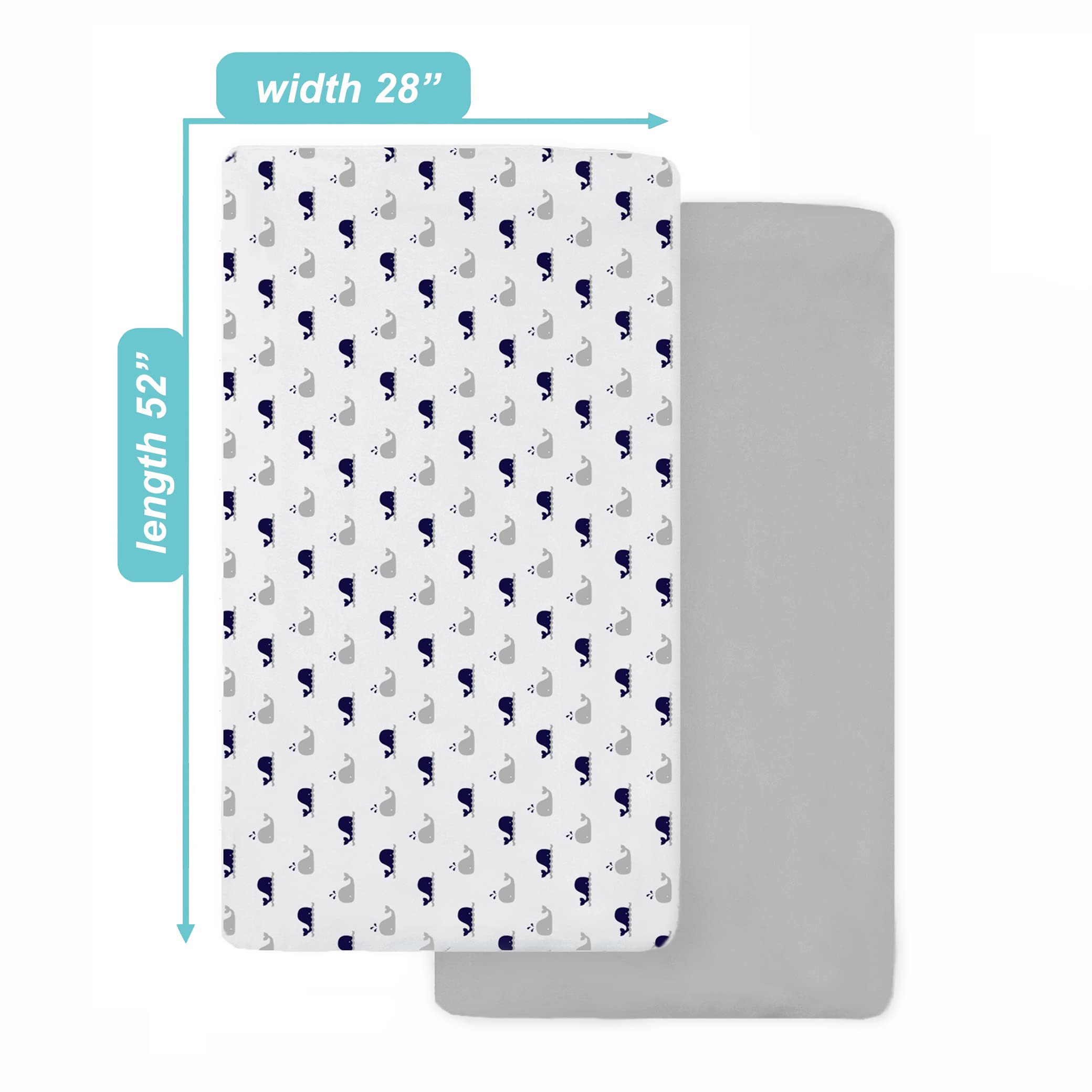 American Baby Company 2 Pack 100% Natural Cotton Fitted Crib Sheets 52" x 28" - Soft, Breathable, Hypoallergenic & Gentle Toddler Bed Sheets, Navy Whale and Gray, Neutral for Boys & Girls
