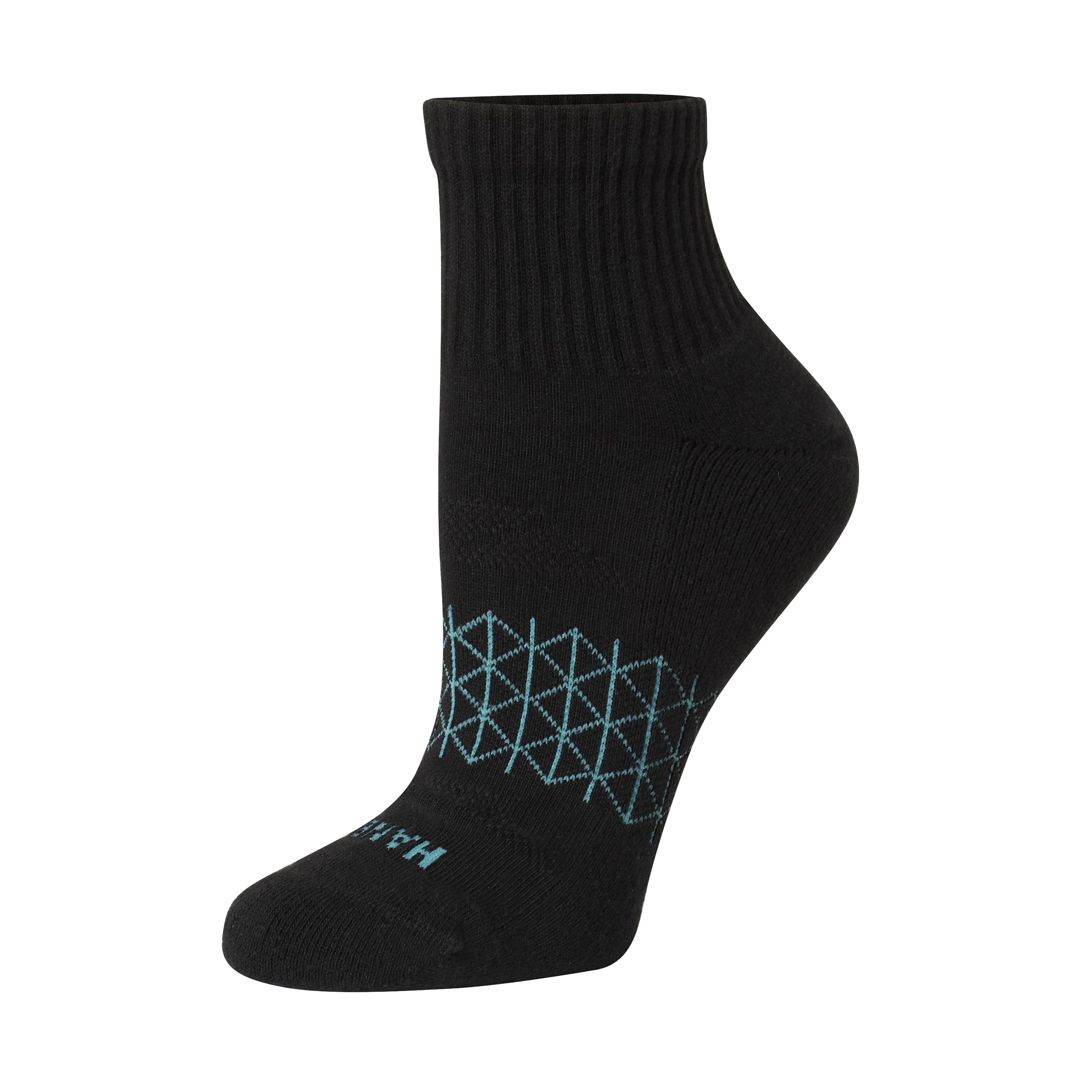 Description Crafted from a soft and thick, cotton-blended fabric, Hanes Absolute Active women’s ankle socks wrap your feet in a comforting embrace that’s like a warm hug for the soles. Enhanced with a ribbed arch support system, extreme cushion footbed, and a Y-heel pocket, they offer exceptional stability and a snug, superlative fit. A seamless toe helps reduce friction and irritation, while the wicking fabric and mesh ventilation team up to keep you cool and comfy throughout the day. You’ll love the cute designs in versatile socks that you may not want to cover up with a sneaker. The best part? This four-pack of exceptional socks offers unbeatable quality at an impressive price point. Hanes Absolute. Because your comfort shouldn’t compromise your budget.