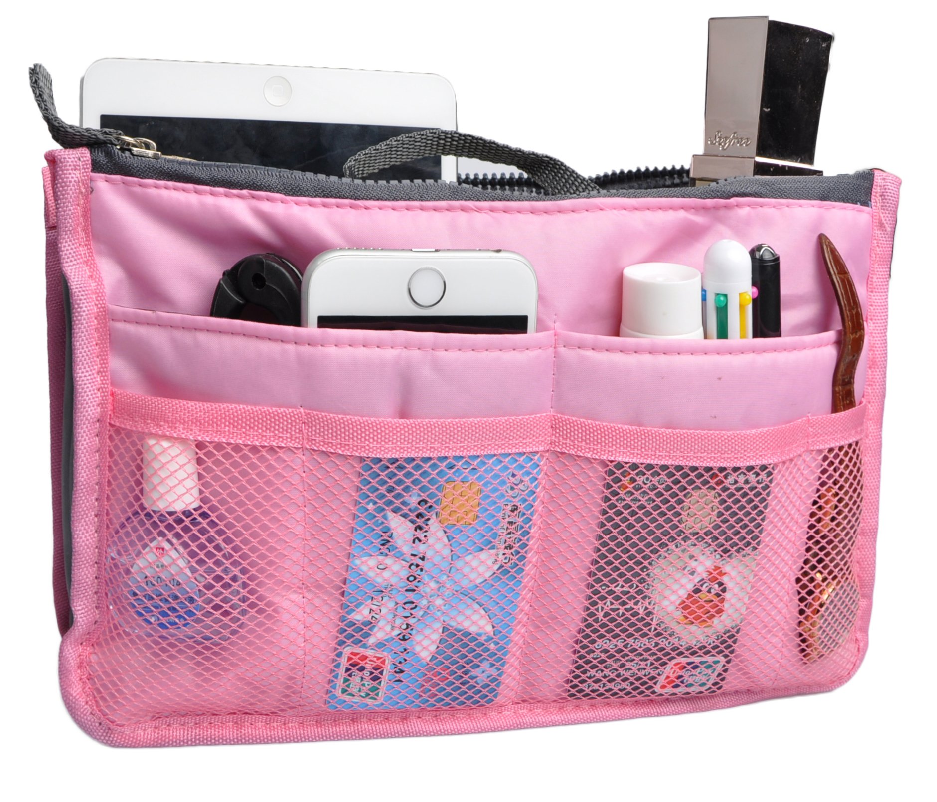 Thses purse insert organizers' two sides have snap buttons, adjust space and help hold things inside, also, help to fold up when not in use. Two handles make it easier and more convenient to transfer between bags. Good companion for all your purses, handbags, totes, bags, pocketsbooks, etc.