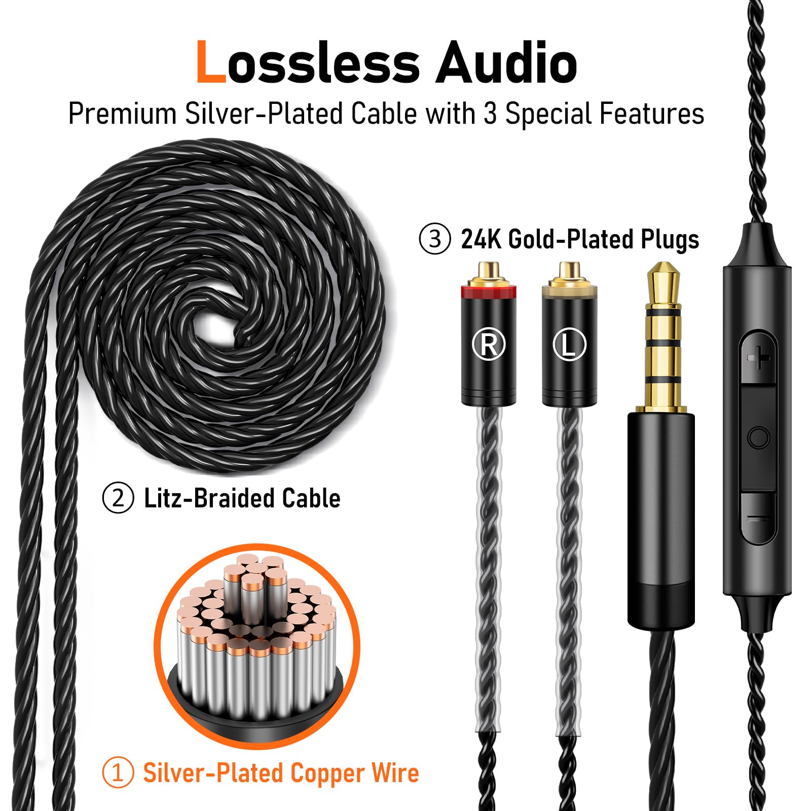 EXCEPTIONAL HIFI SOUND - Equipped with a 1-Tesla powerful driver and master-tuned professional acoustic chambers, the Vibes 202M HiFi in-ear monitor earphones deliver precise and detailed sound across a full frequency range from 8 to 23k Hz. The high-purity, silver-plated, Litz-braided audio cable ensures stable and lossless sound transmission for pure, unaltered audio.