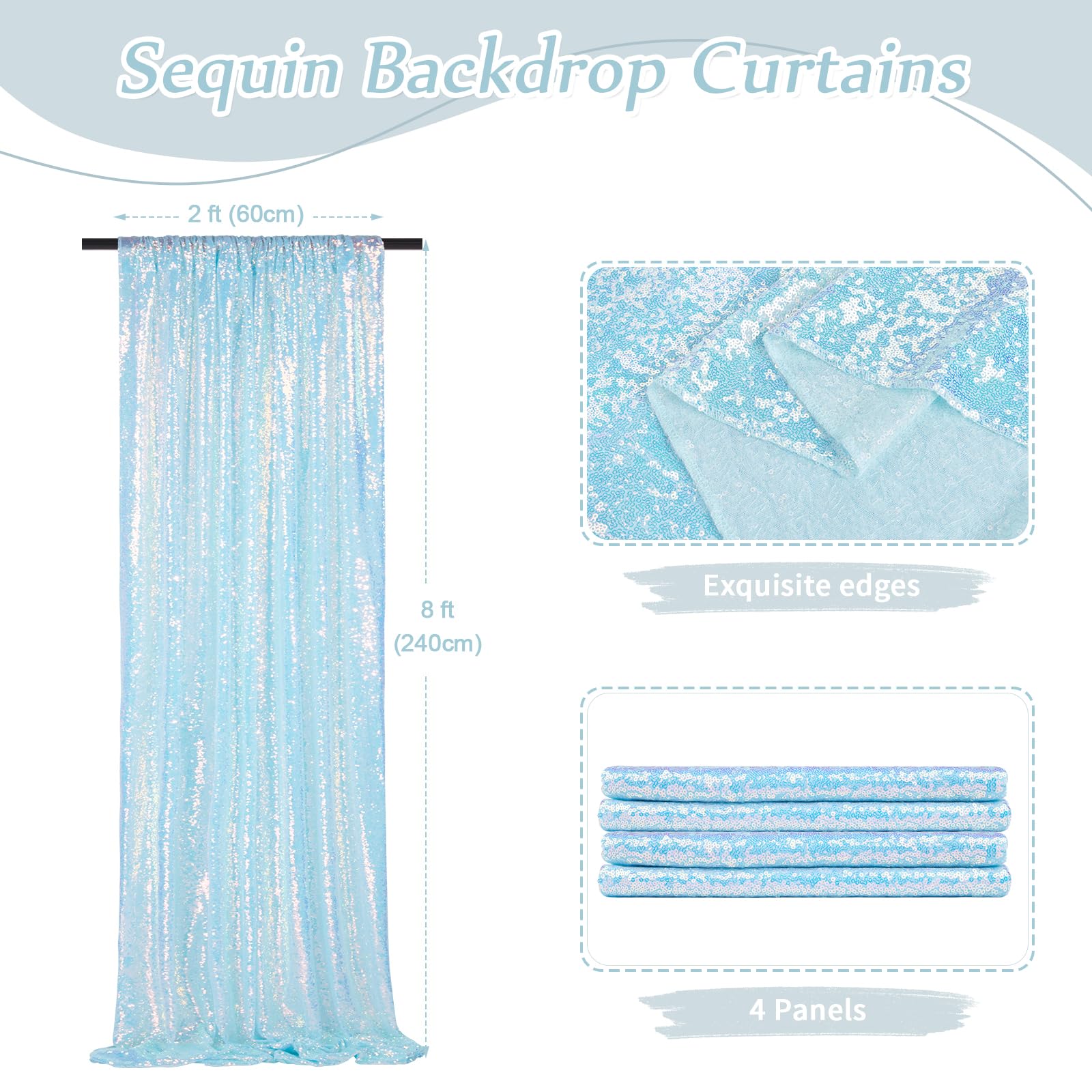 Sequin Backdrop Curtain: 4PCS 2FT Width By 8FT Height Sequin Backdrop with a 4-inch rod pocket on the top for easy hanging.