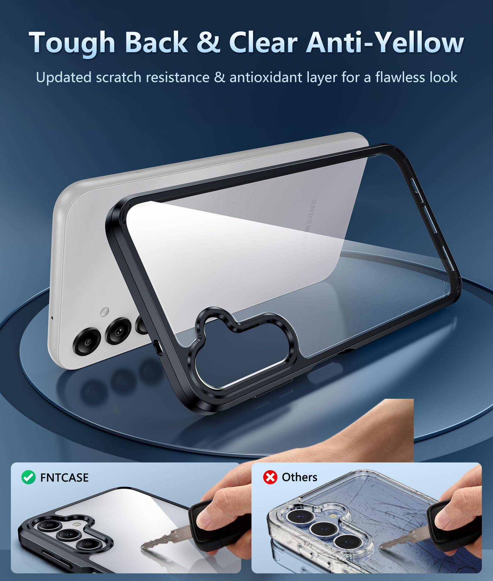 Crystal Clear & Never Yellow: Using high-grade Bayer's ultra-clear TPU and PC material, allowing you to admire the original sublime beauty for Samsung Galaxy A14 while won't get oily when used. The Nano antioxidant layer effectively resists stains and sweat