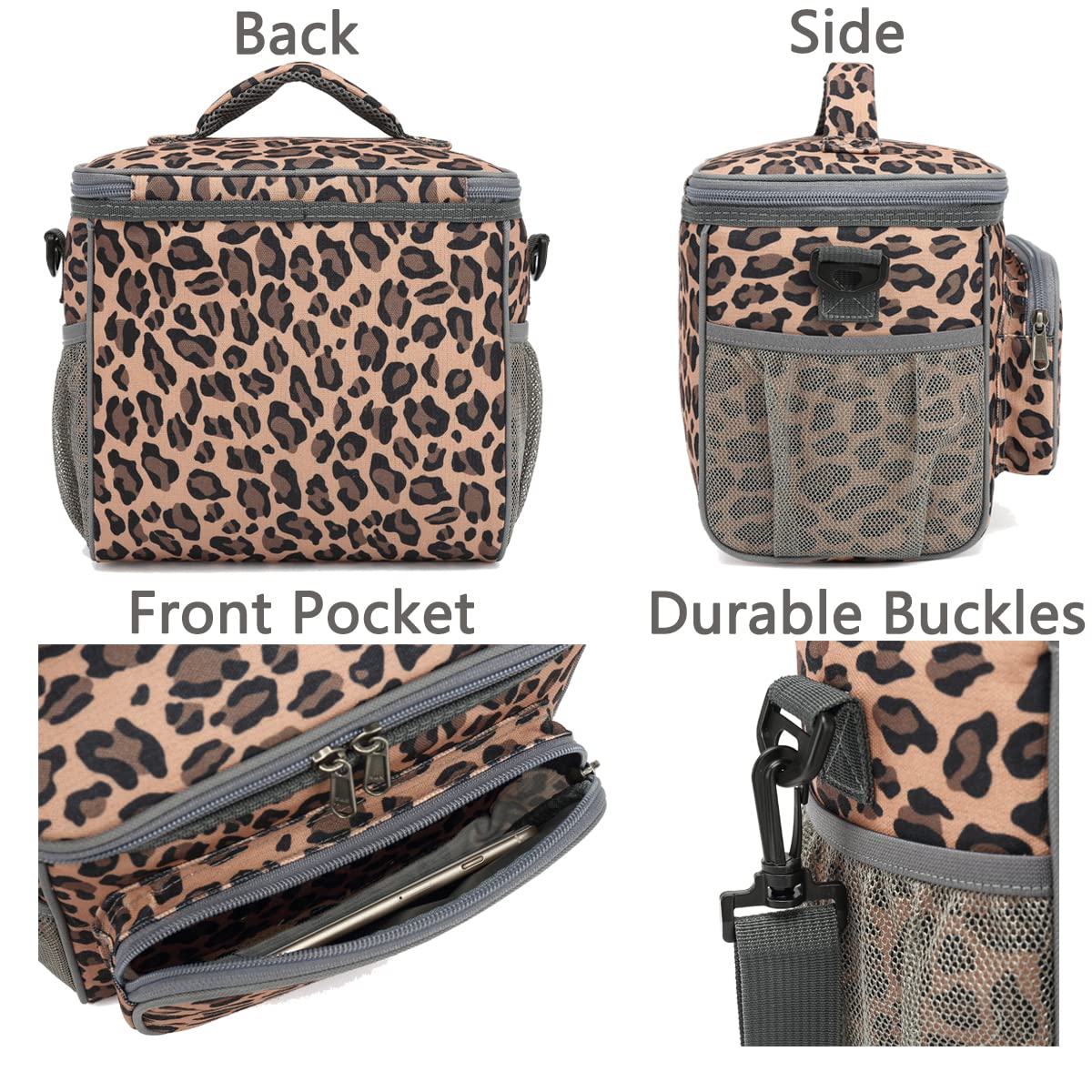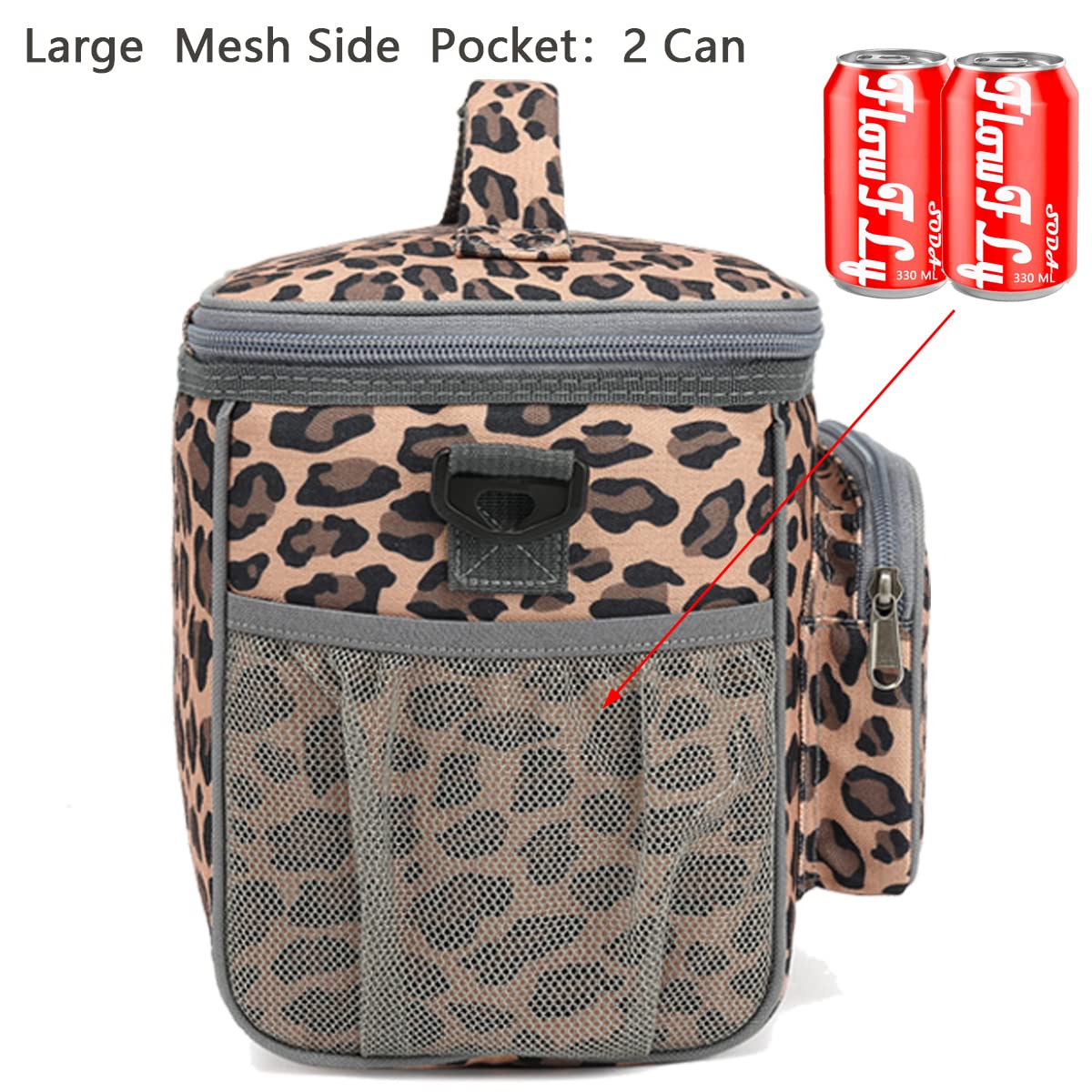 ✿ Large Size:the dimension of the container is:10.24”L×7.48”W×9.06”H,but not too bulky , it could give roomy storage space you need to hold your favotite meals,delies and lunch treats.You could fill the roomy compartments or pockets with lunch boxes, food containers, condiments,fruit salad bowls,utensils,napkins,can opener,wallet,keys and other essentials. Keep your water bottles or energy drinks inside the mesh pocket and quench your thirst of the spot.