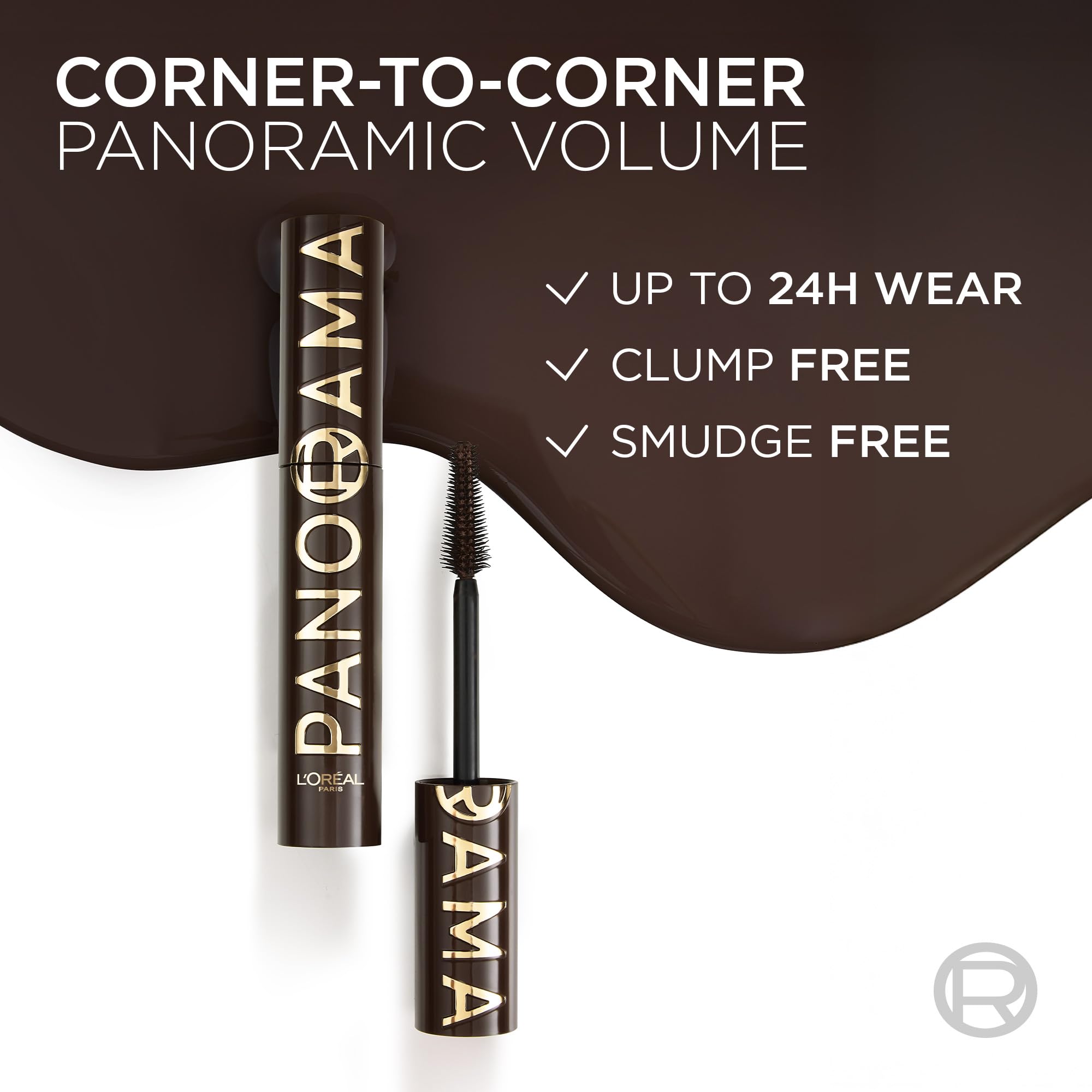 Shop L'Oreal Paris Panorama Mascara for corner to corner panoramic volume now in 3 colored shades to enhance your natural eye color. A volumizing mascara that is clump resistant, flake resistant, smudge resistant, and up to 24hr wear. Feels lightweight. Multi level bristle brush easily grabs each lash from inner to outer corner allowing for even application from root to tip