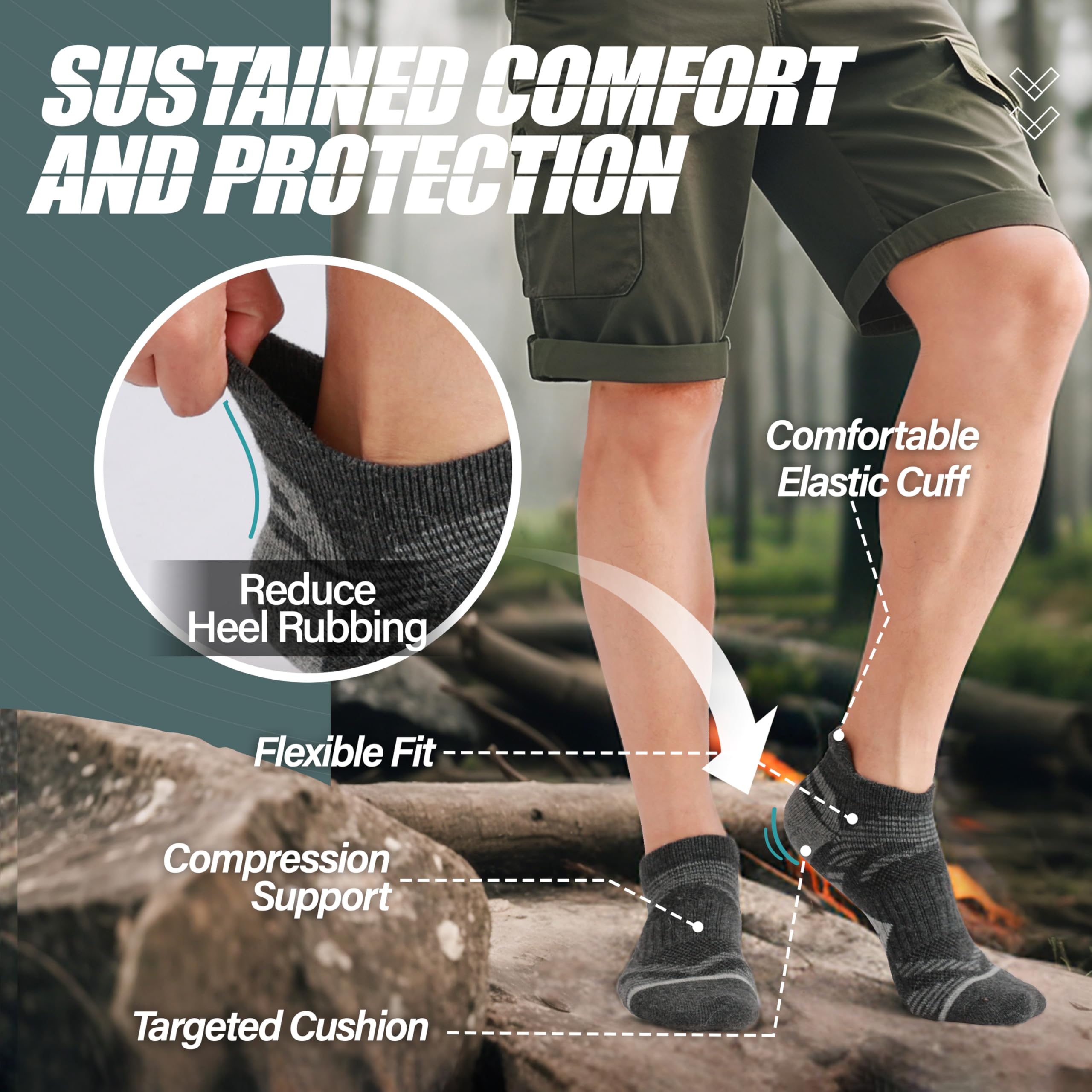 š PROTECTION FOR FEET : High stretchy fabric keeps socks fit snugly and prevents slipping.Targeted cushioning has better shock absorption, which can reduces the foot soreness and provides more protection for Achilles.Engineered heel and seamless toe do not grind your feet and avoid blisters , providing the most comprehensive protection for your feet.