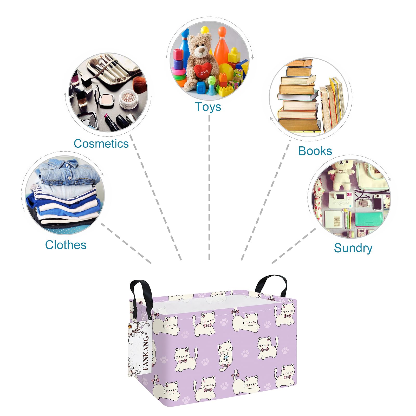 This storage bag suitable for adult, teens, kids, children; suitable for toys, books, clothes and other stuff, suitable for home and school. Why choose our large storage basket? - Spacious capacity, store more stuff. - Sturdy side handles for easy toting. - Collapsible design for compact, convenient storage. - Cute lovely animal pattern design. - Multiple function, suitable for any place. Features: - Perfect organizer for play rooms, allowing for the storage of toys, books, blocks, stuffed animals, toys with multiple pieces, train sets, or board games. -reading materials, as well as in the bathroom for towels, or as a laundry hamper.
