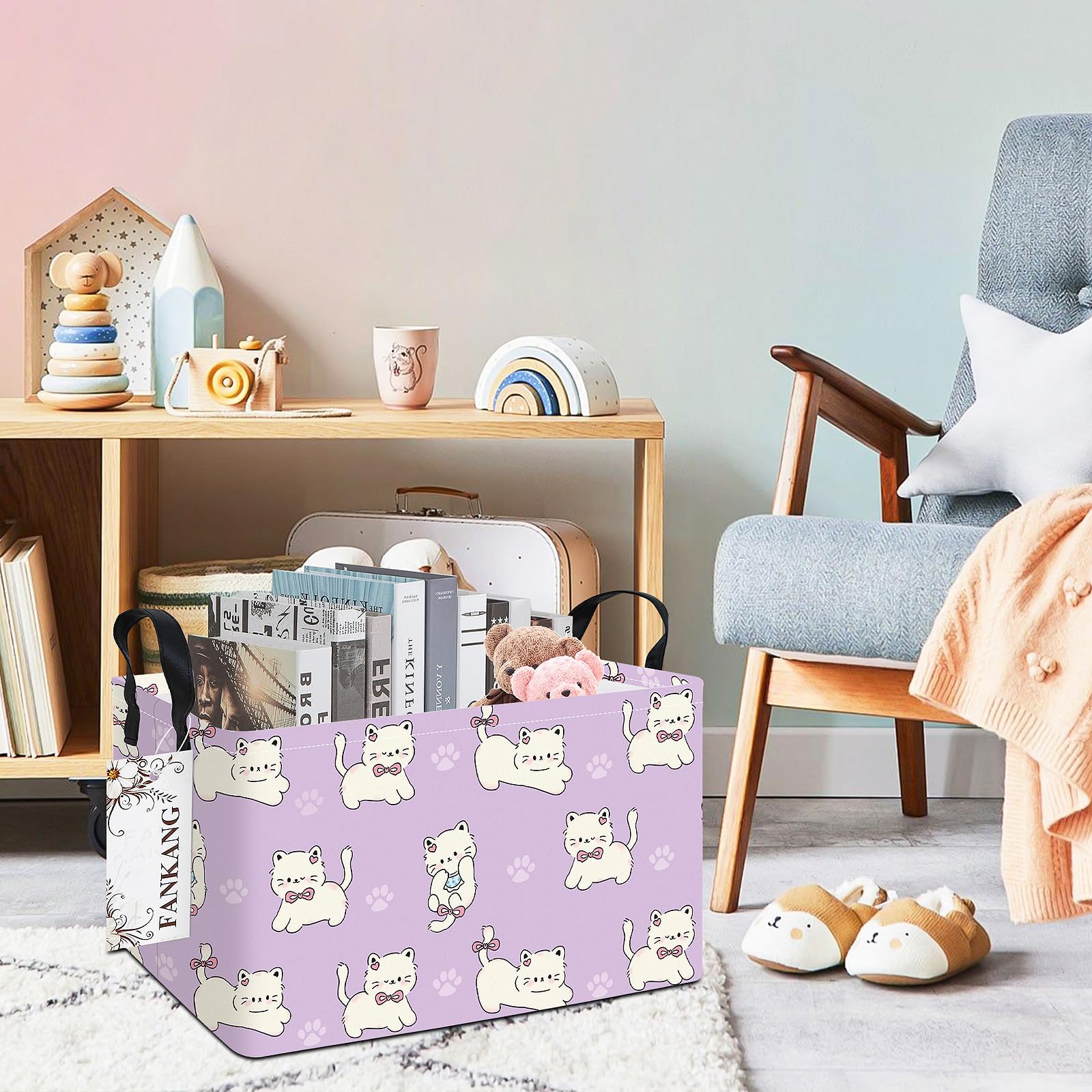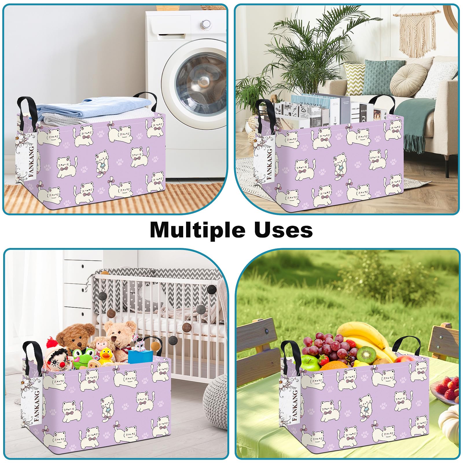 【Multi-functional】The laundry basket is collapsible, safe and fun for children to storage and move their toys, dirty clothes, home zakka, books, magazines.