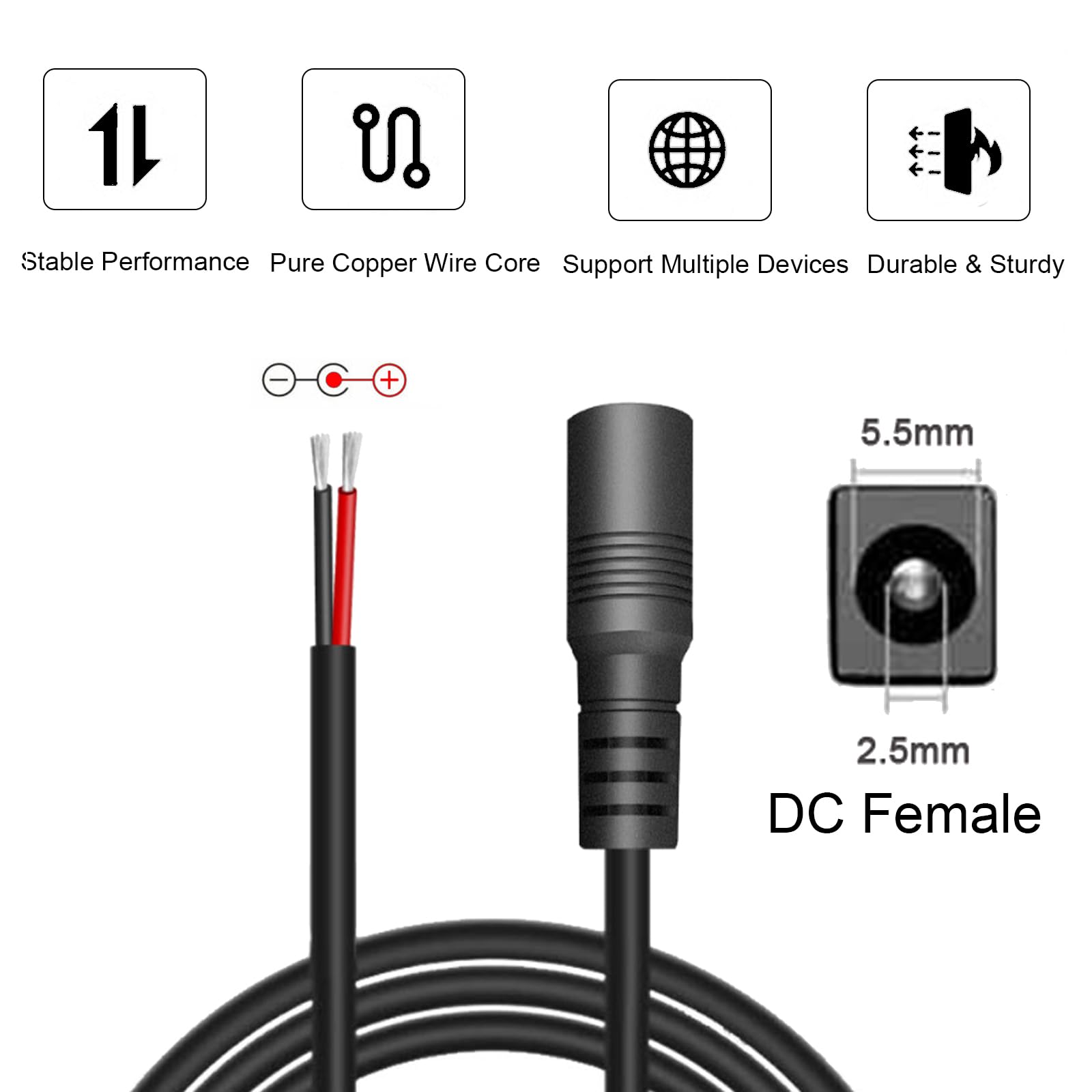 Easy to Use: The power cord end of the 5.5 mm x 2.5 mm dc plug female has been pre stripped and tinned, you can quickly connect by welding or using additional tools, 2 pigtail provides convenience for you.