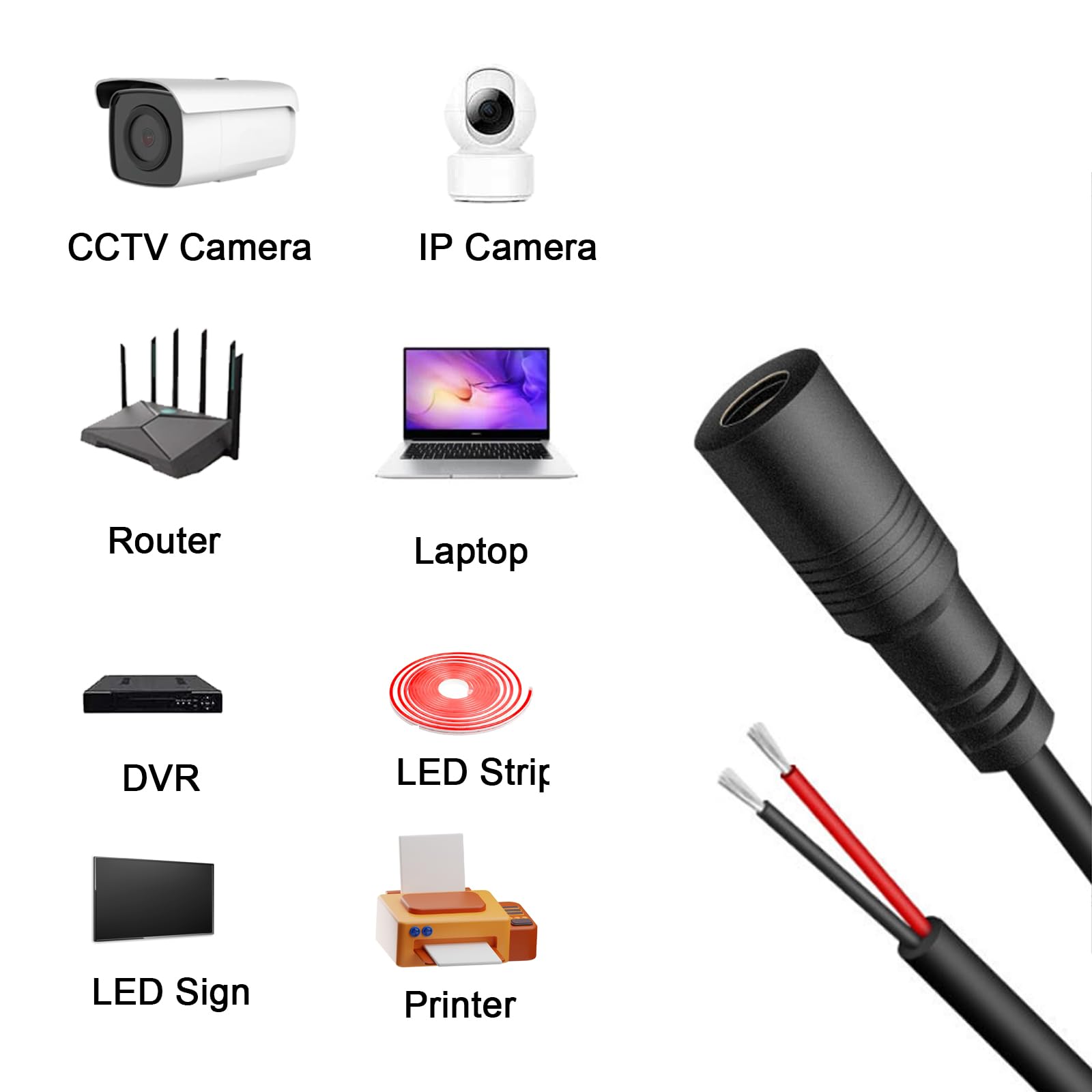 The Benefits of 5525 DC Female Cable: When you encounter the problem of your 5.5mm x 2.5mm dc male cable being too short, you can connect a 5525 dc female plug to increase the length of the cable without the need to replace it with a new dc male connector cable.