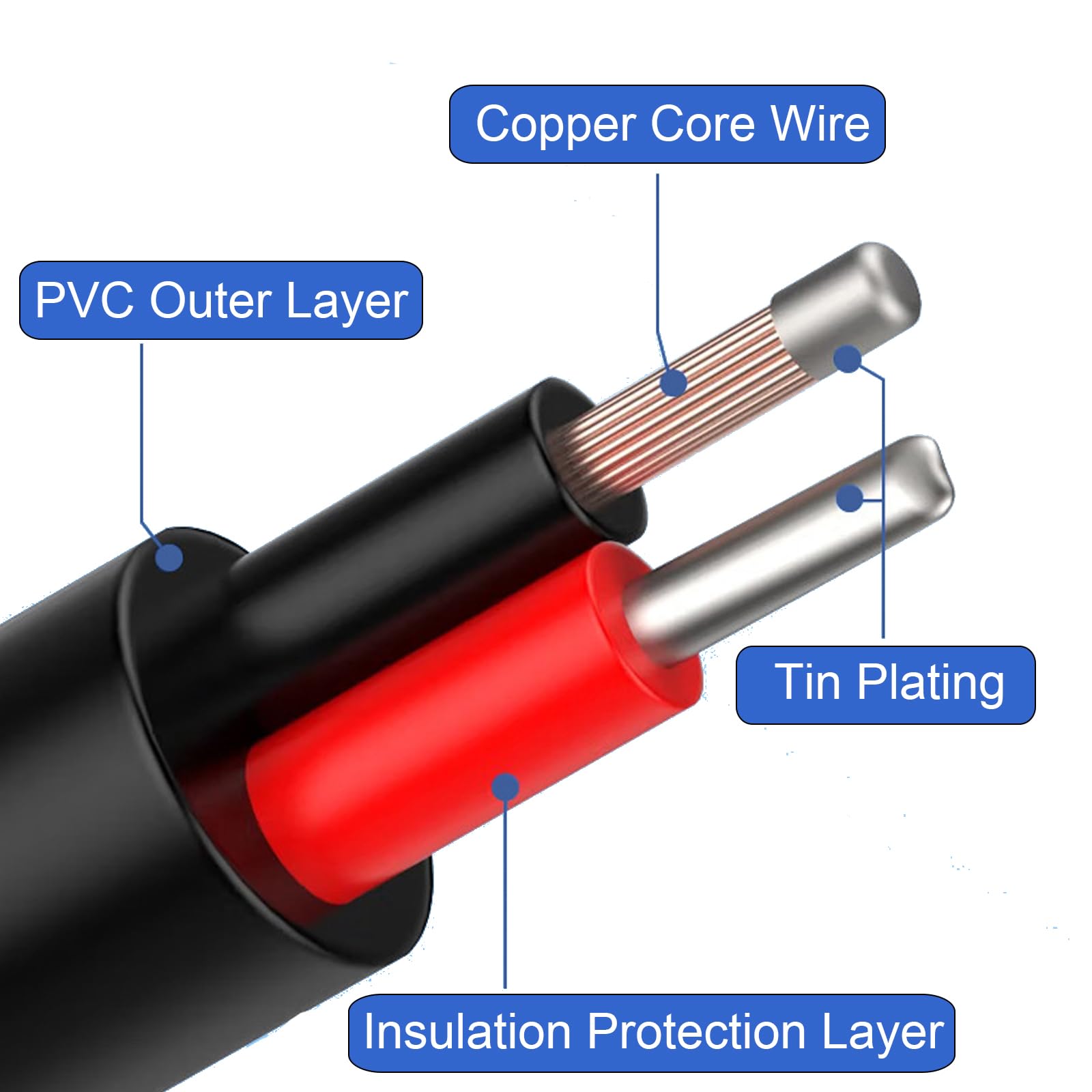 18AWG DC Female Pigtail: 5525 dc power female pigatil is 18AWG. Compared to 20AWG, its wire is thicker, which means that 18AWG can carry a larger current than 20AWG wire, with a current of 7A. If you need your project to bear a larger current, you need to choose 18AWG.