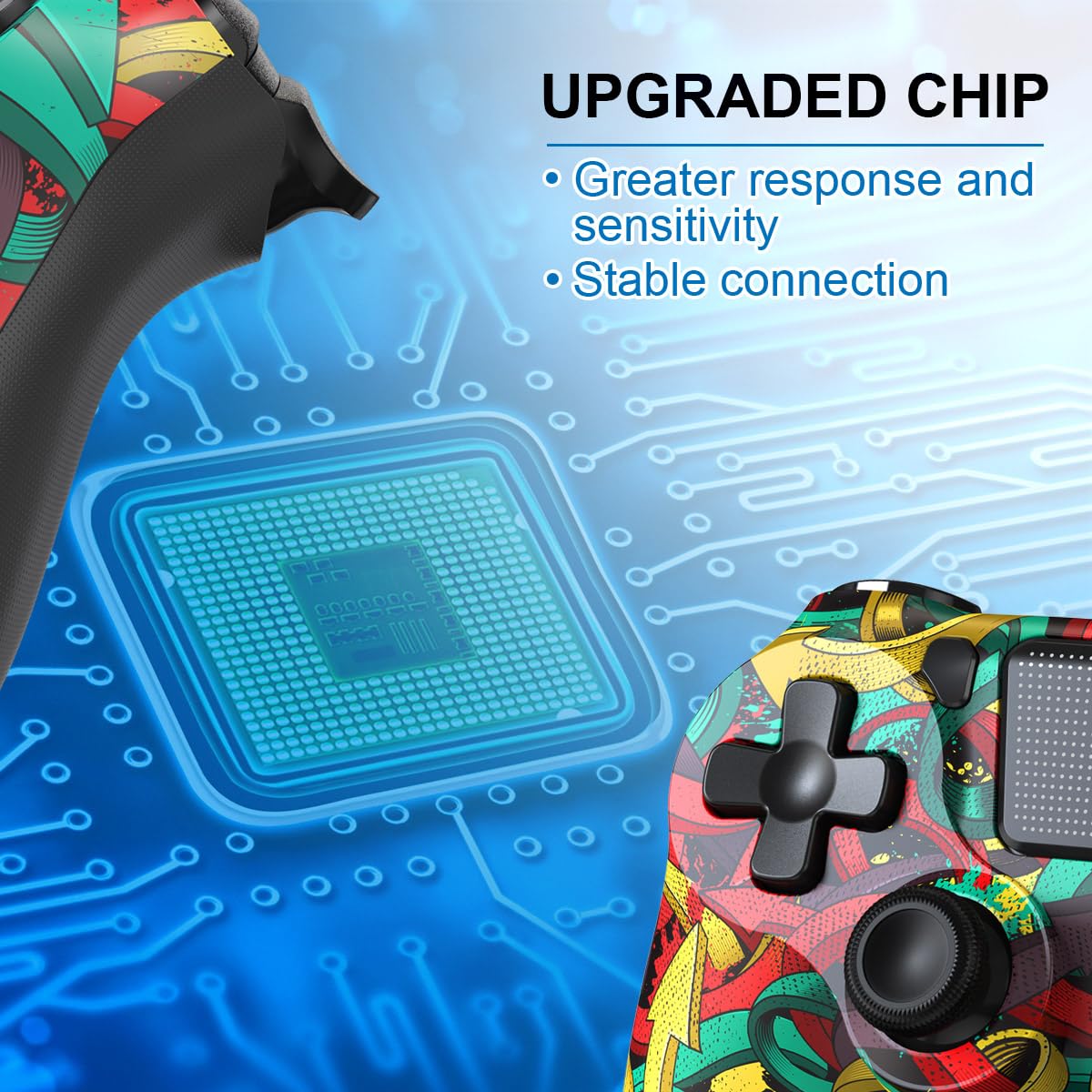 The wireless controller is equipped with a updated chip, which can deliver greater response and sensitivity. 360° non-slip joystick, no delay and drift.