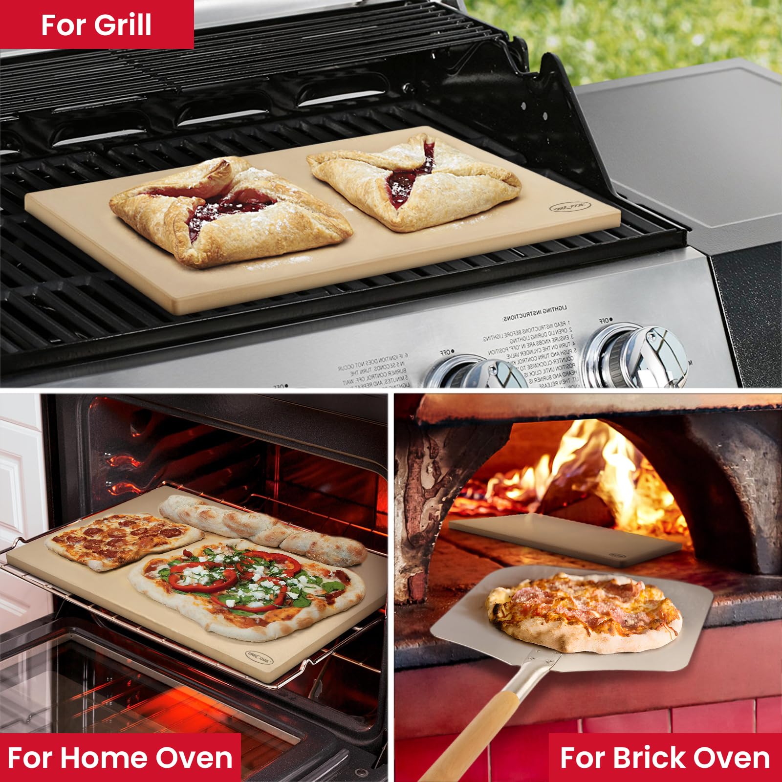 Even Cooking Baking Stone: The Unicook oven baking stone is made of Cordierite and heat resistant up to 1,450℉(787℃). It distributes heat evenly and retains high heat for consistent cooking without charring the toppings and prevents hot spots. No more soggy middles or burnt edges