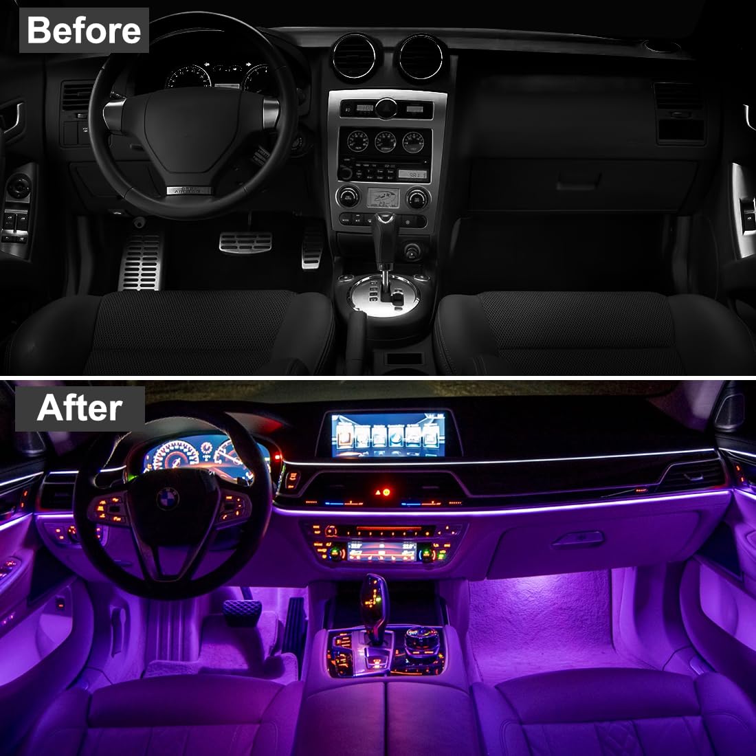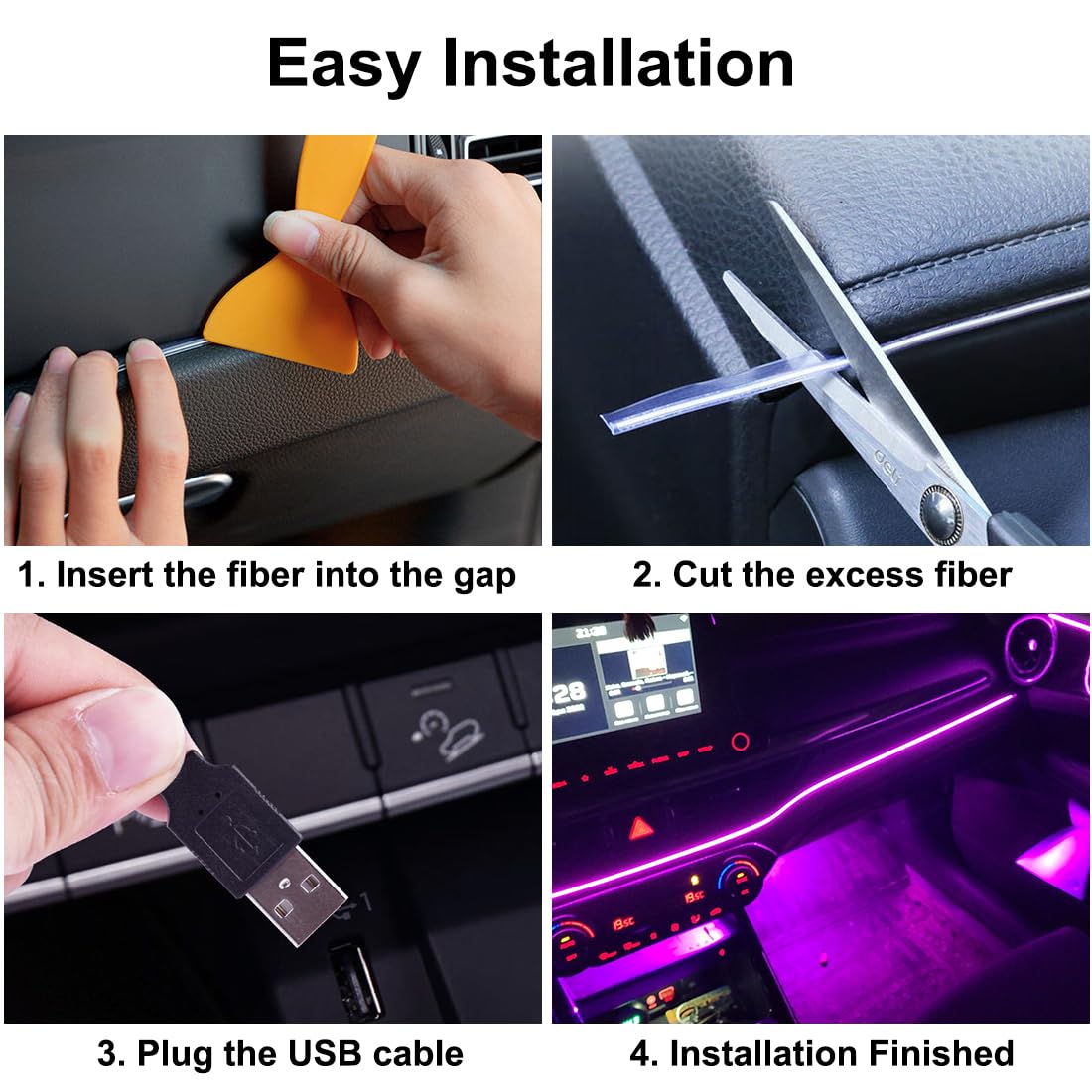 Safe and Tidy: The car interior ambient light is powered by USB, you can install it in the car gap, which can provide your car with a good atmosphere effect and make your car tidy. No heat even if used for a long time, Much brighter than regular el wire.
